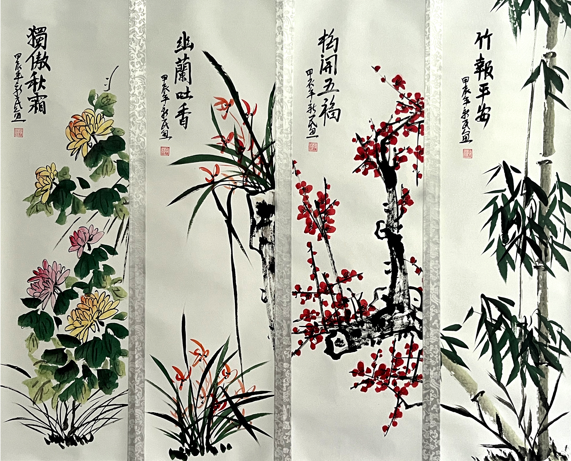 国画: 梅兰竹菊四条屏