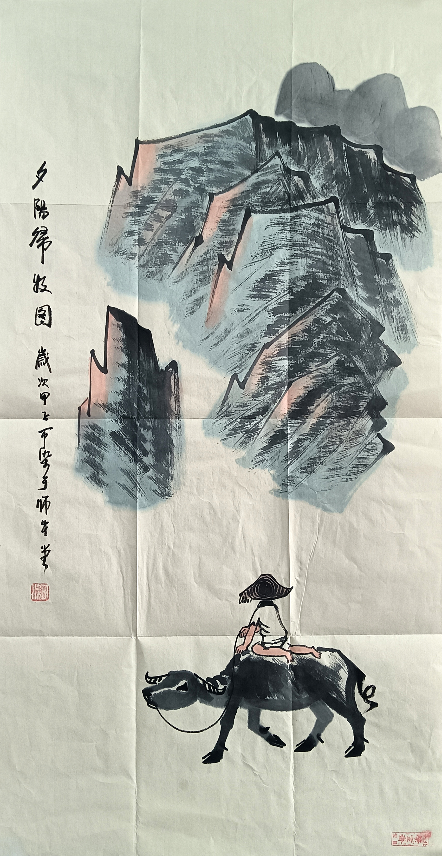 国画:夕阳归牧图