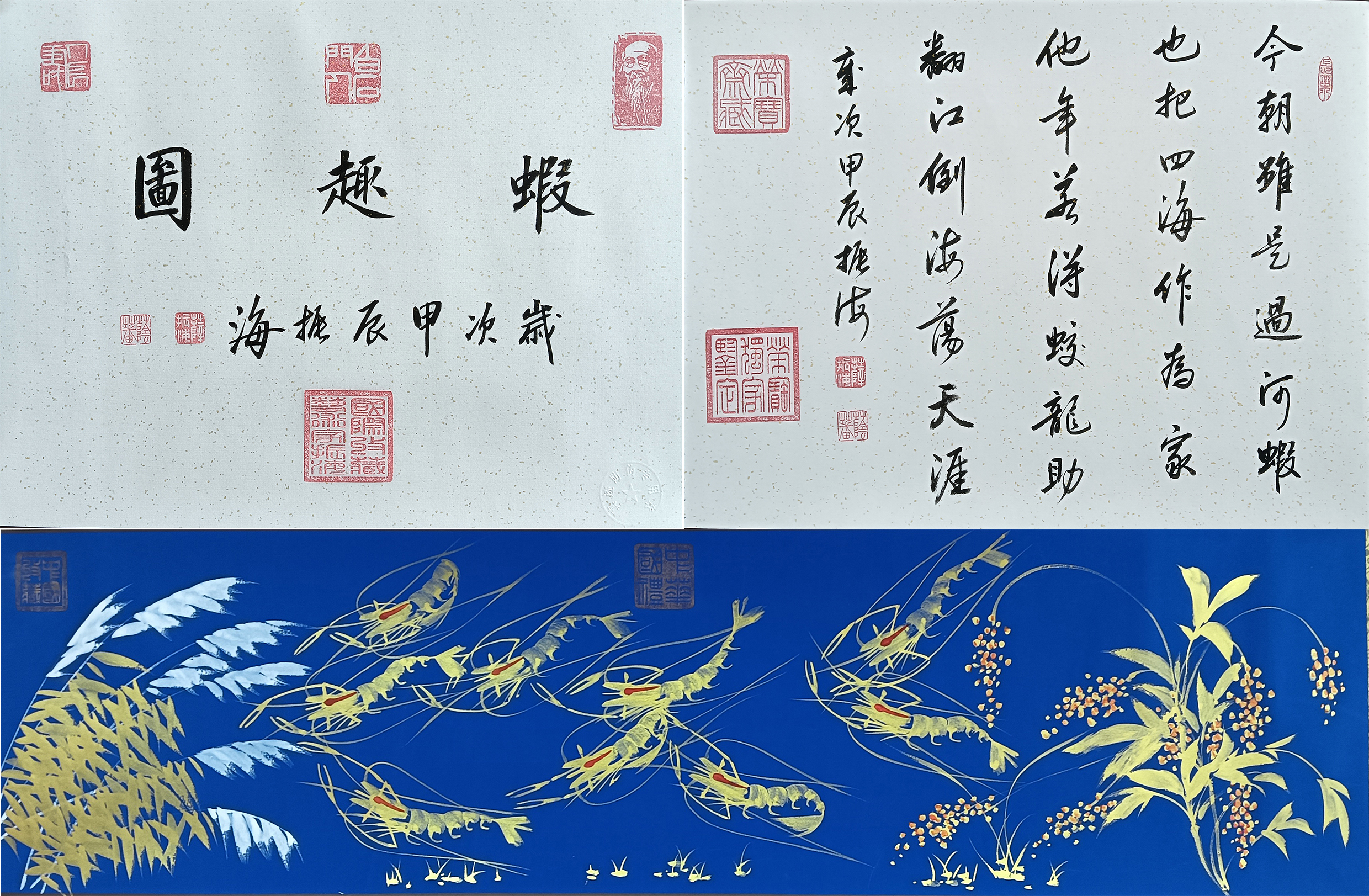 国画:金虾长卷、虾趣图