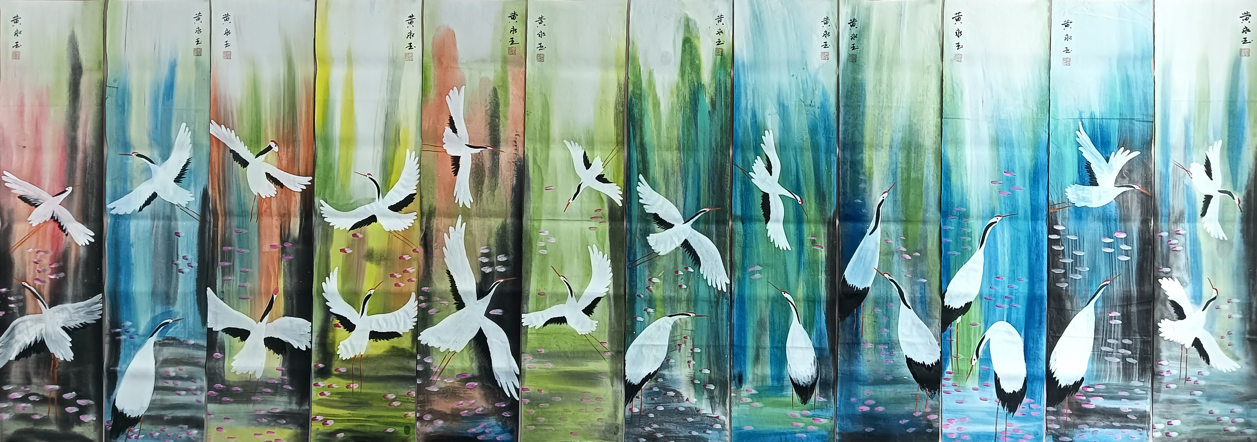 国画:仙鹤十二条屏