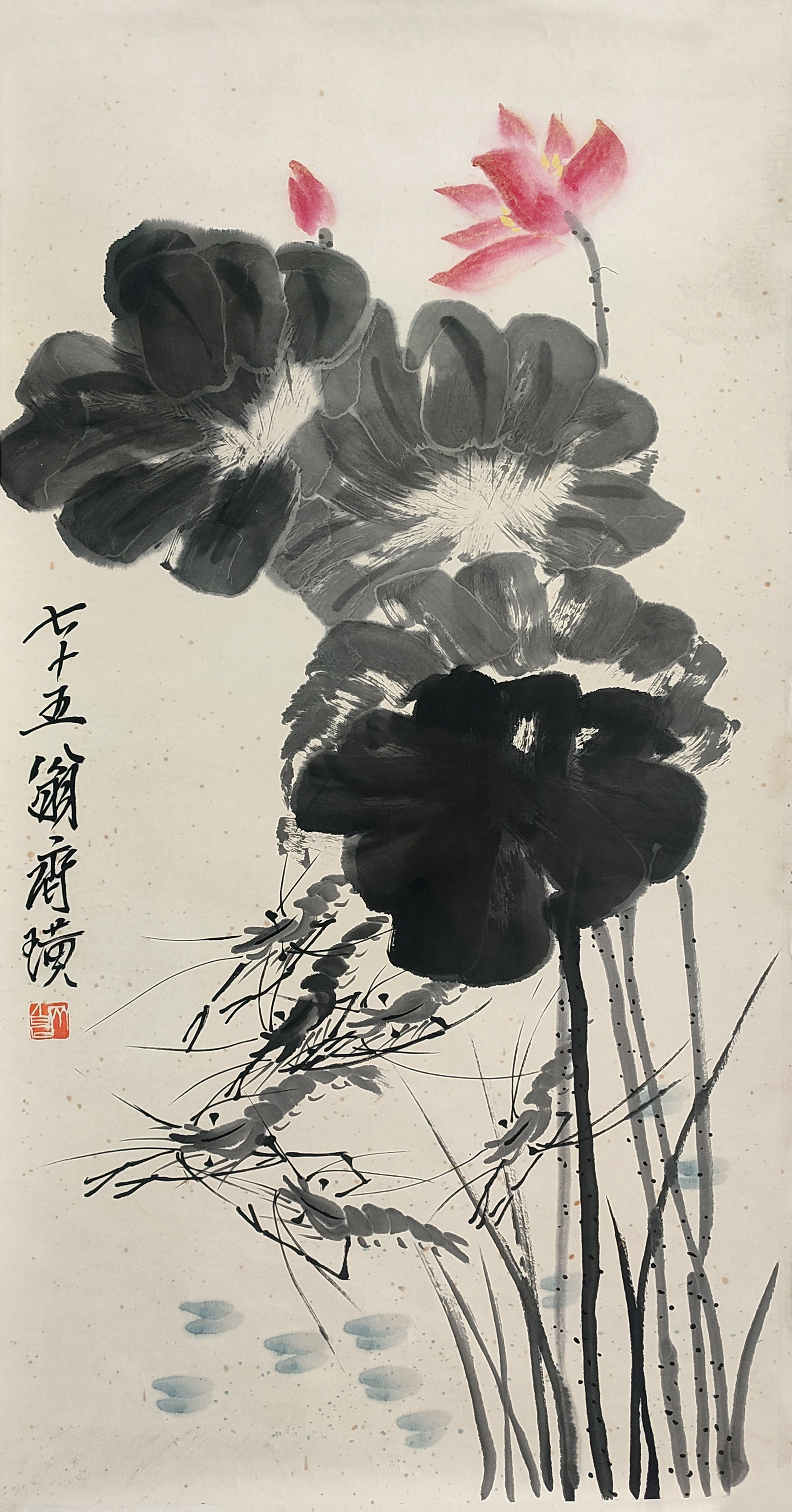 国画:荷虾图