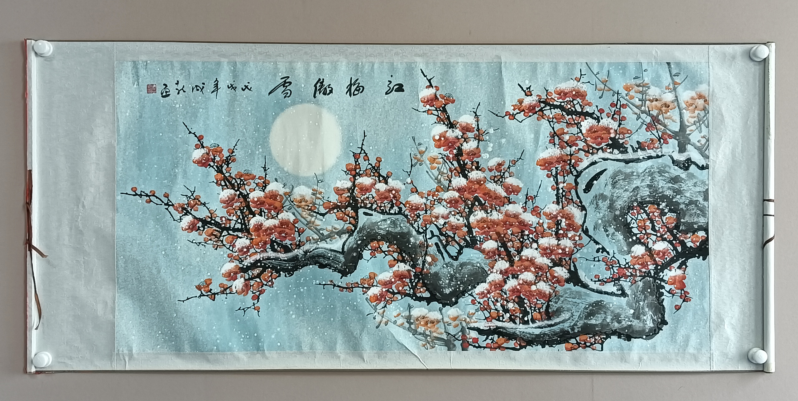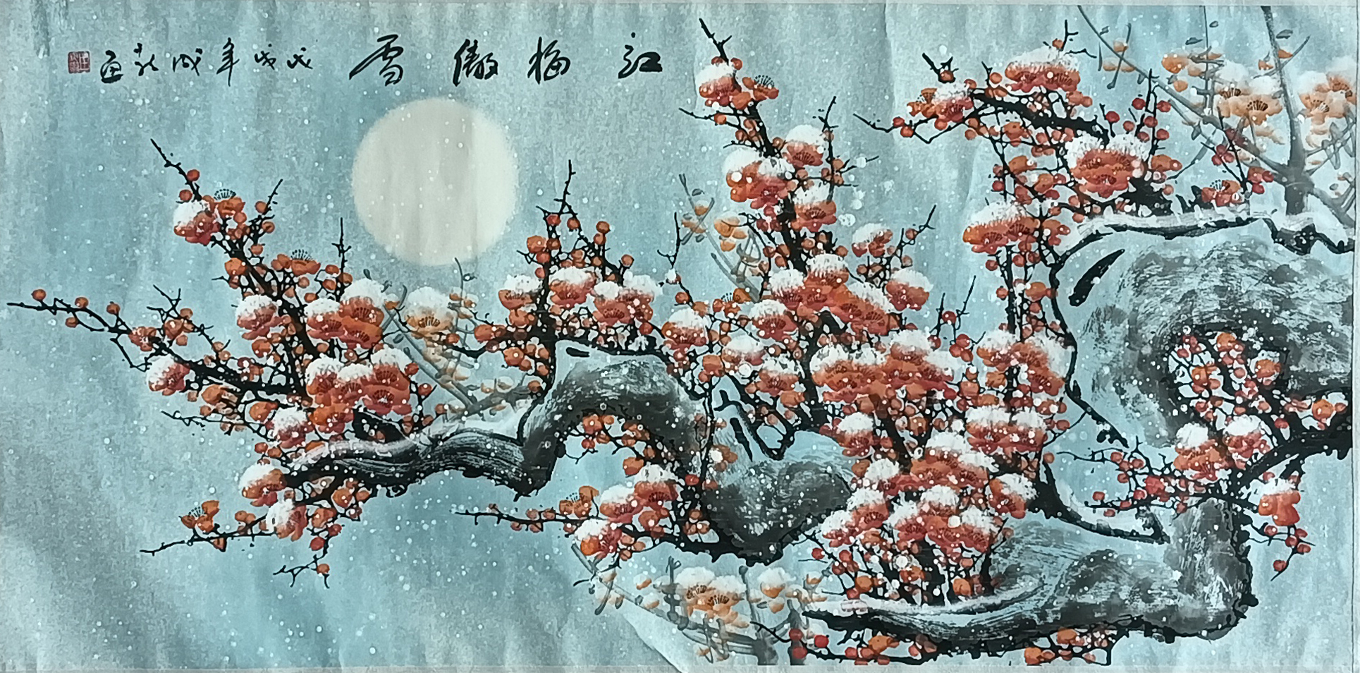 国画:红梅傲雪
