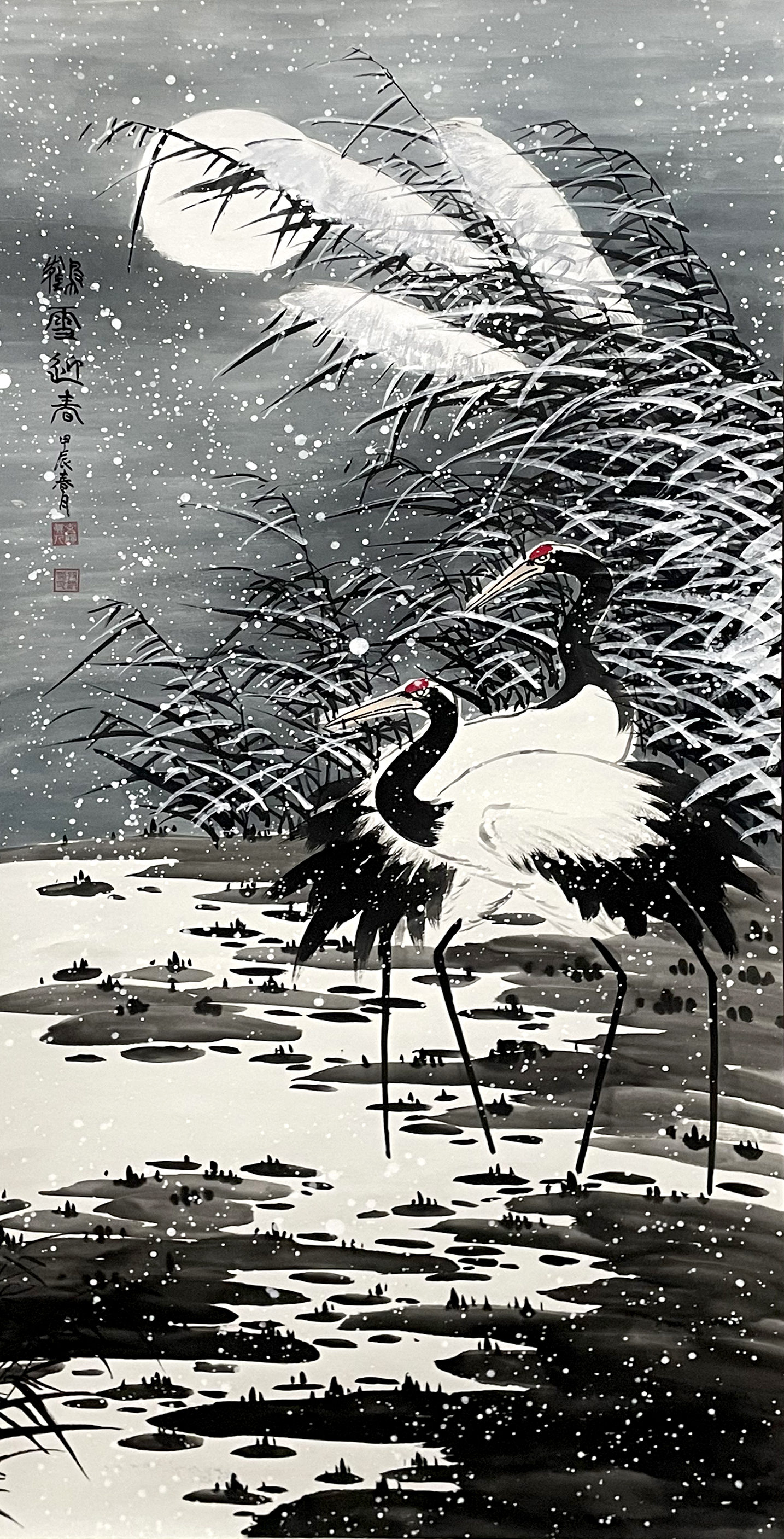 国画:鹤雪迎春