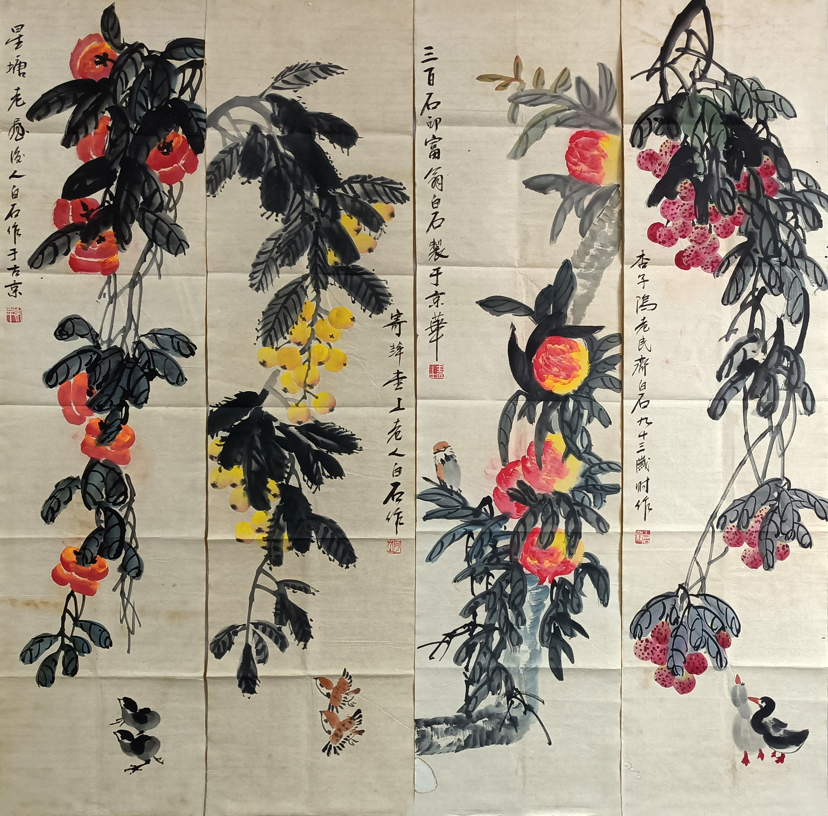国画:花鸟四条屏