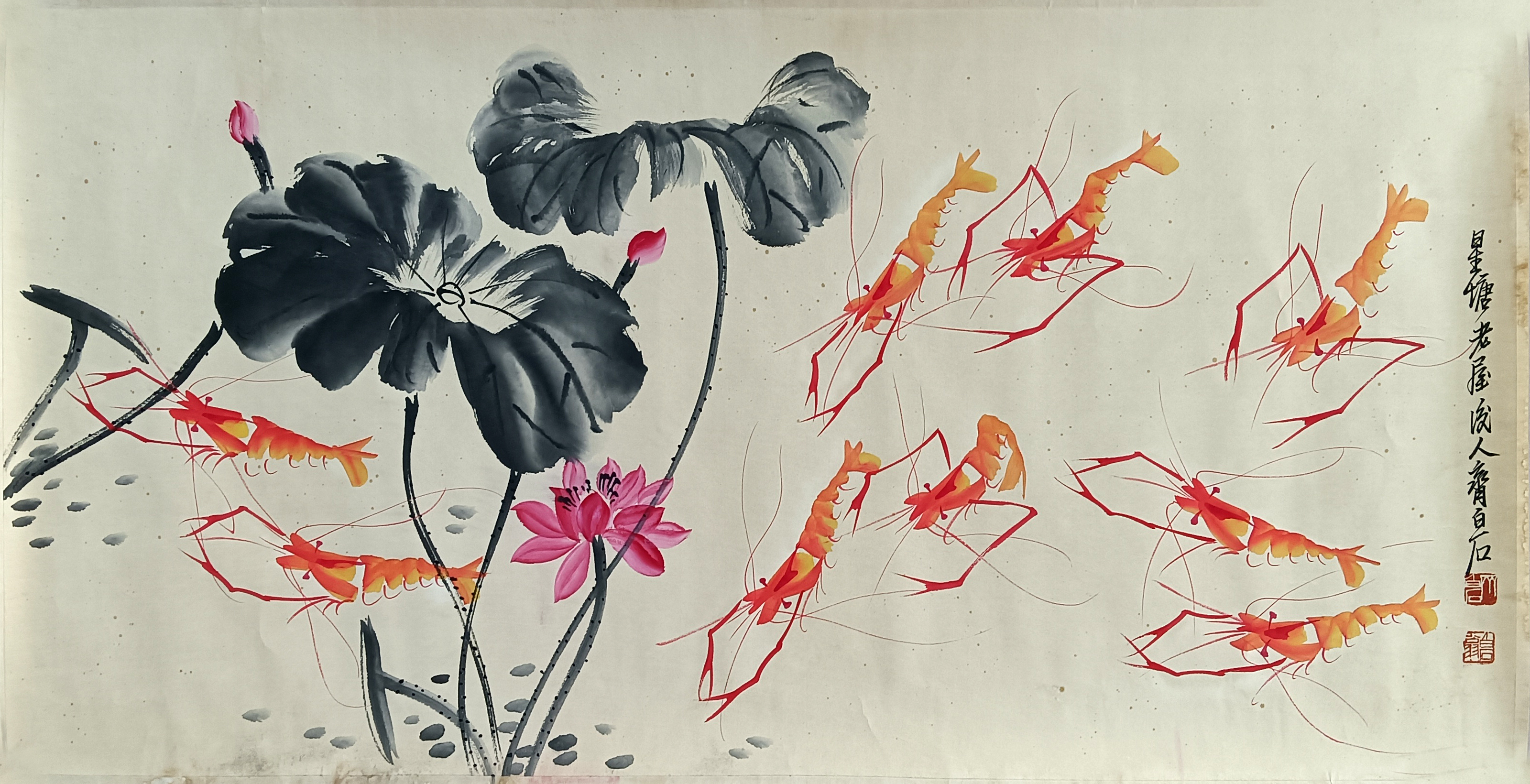 国画:彩虾