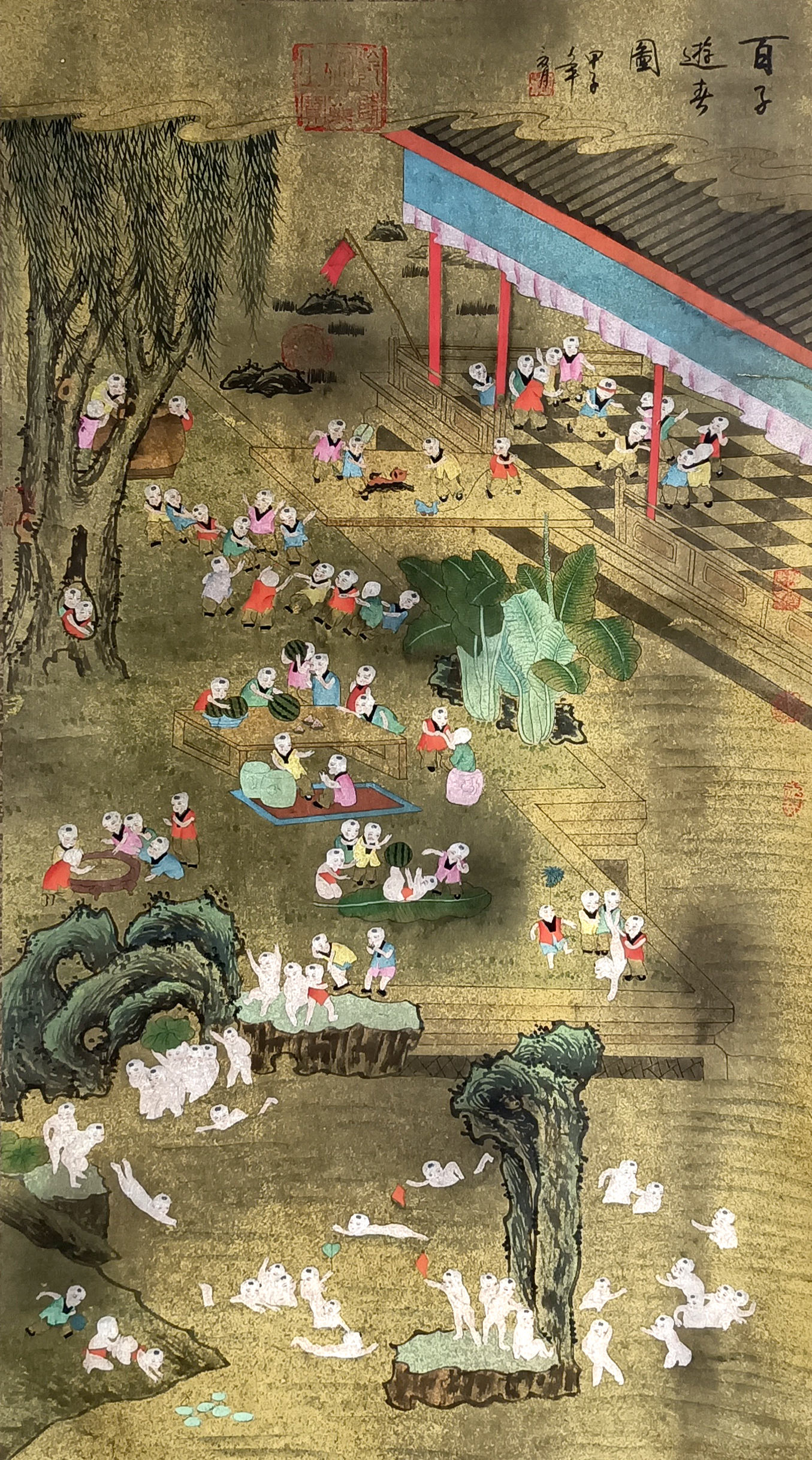 国画:百子游园图