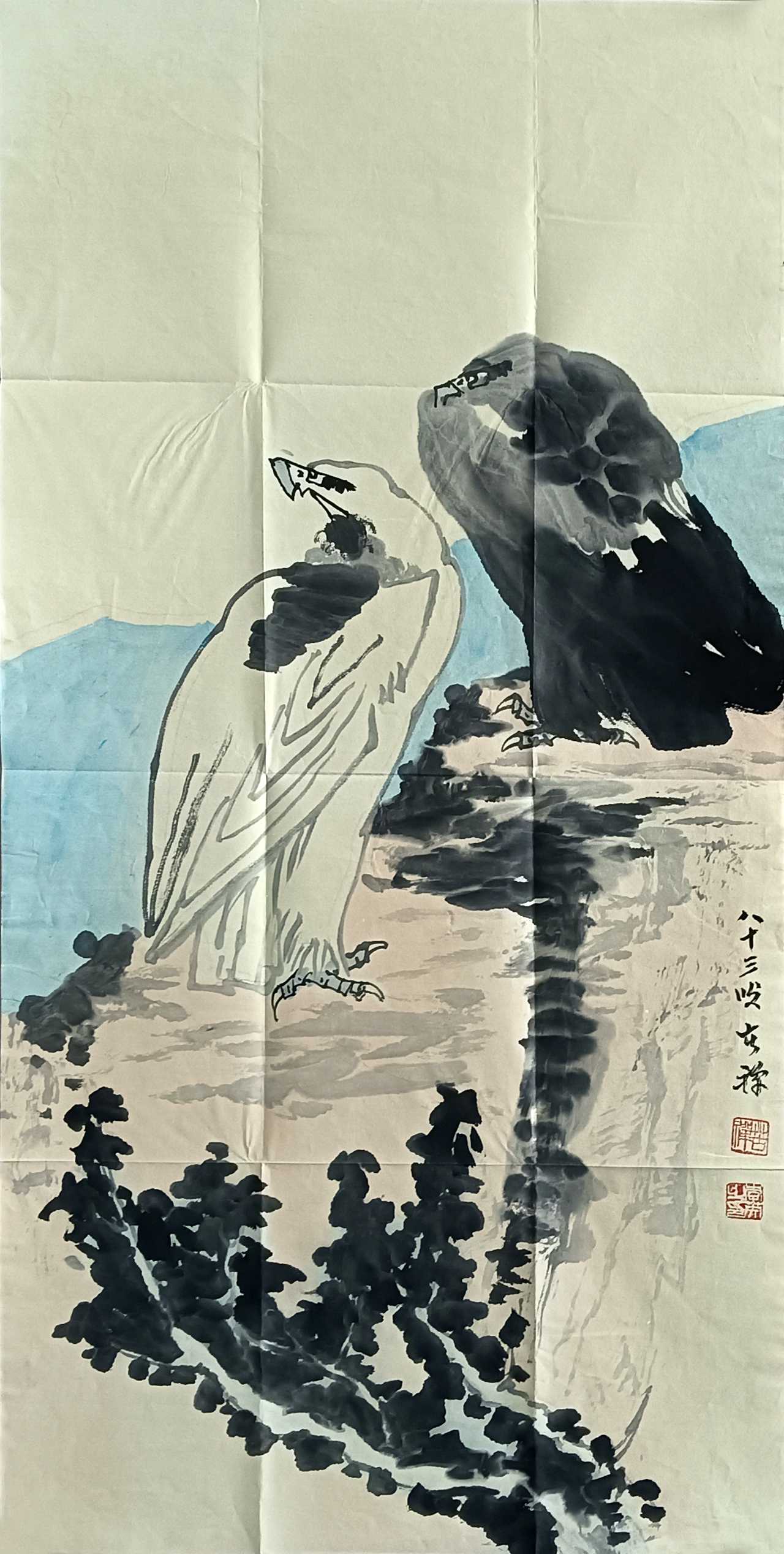 国画:双鹰图