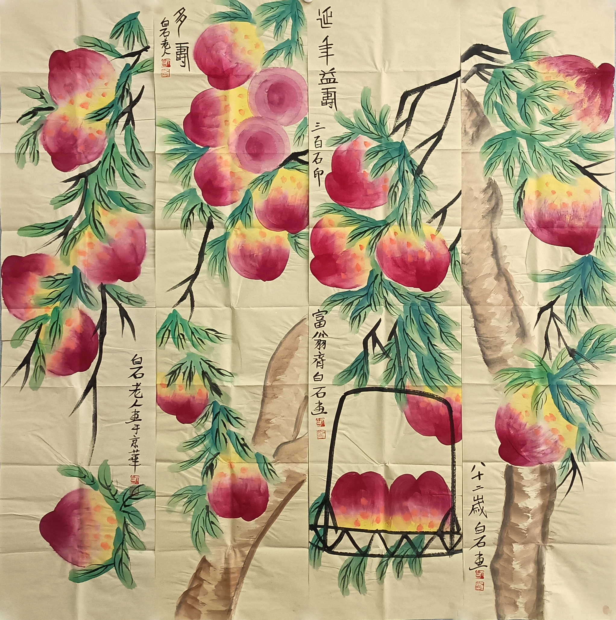 国画:多寿四条屏