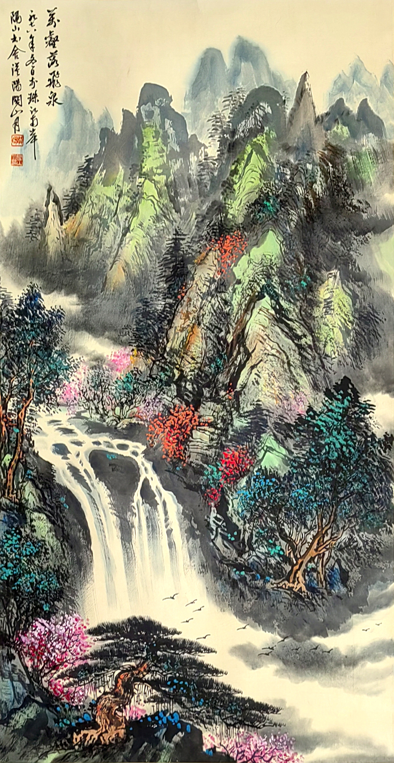 国画:万壑落飞泉
