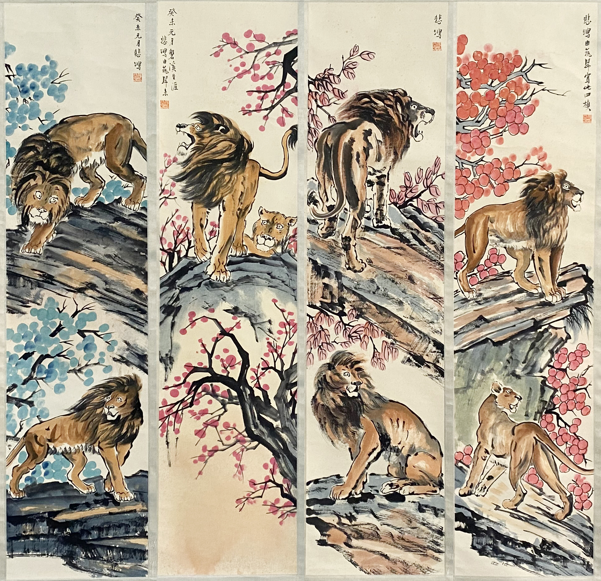 国画:雄狮四条屏