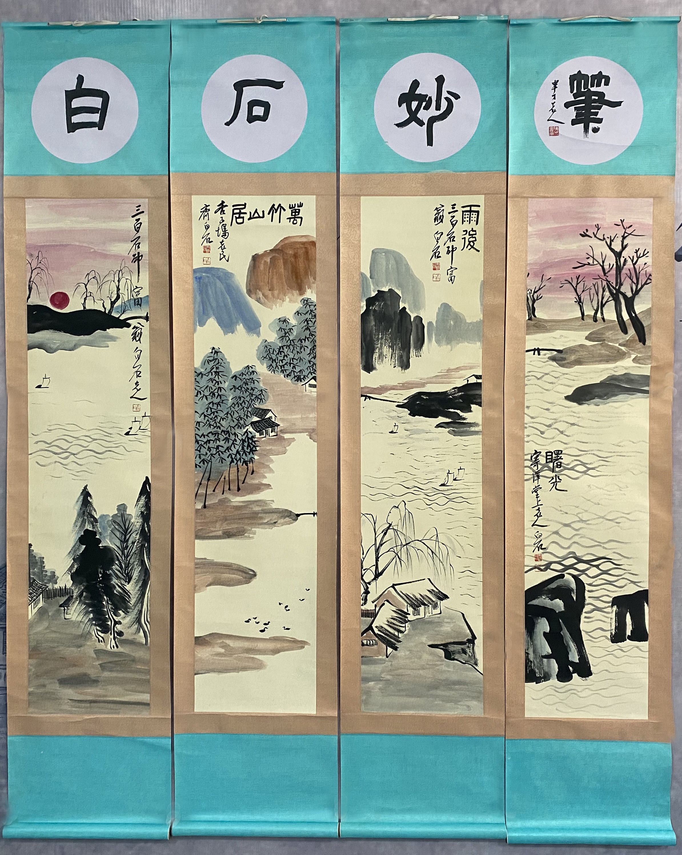 国画:曙光四条屏