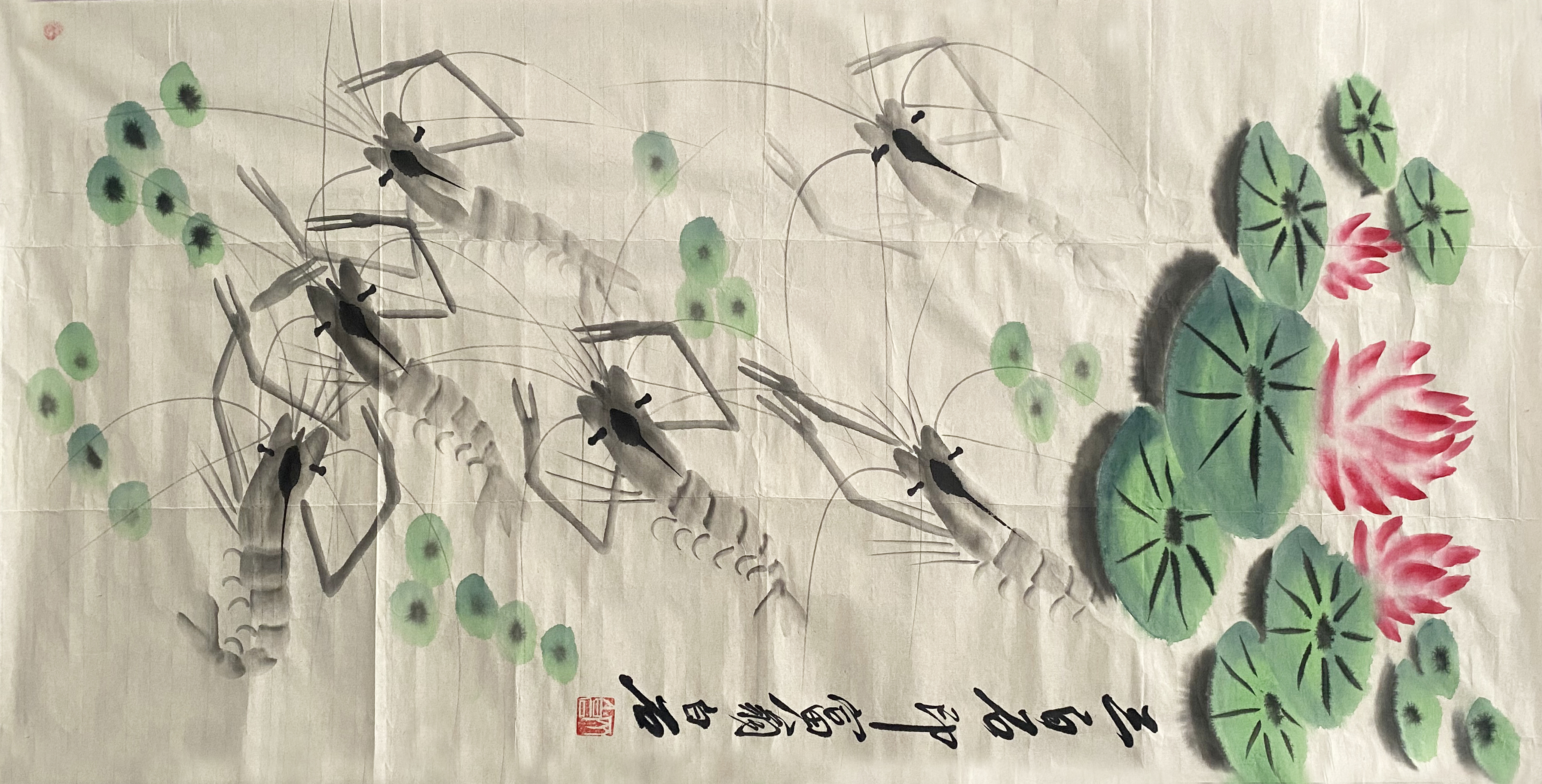 国画:虾趣图