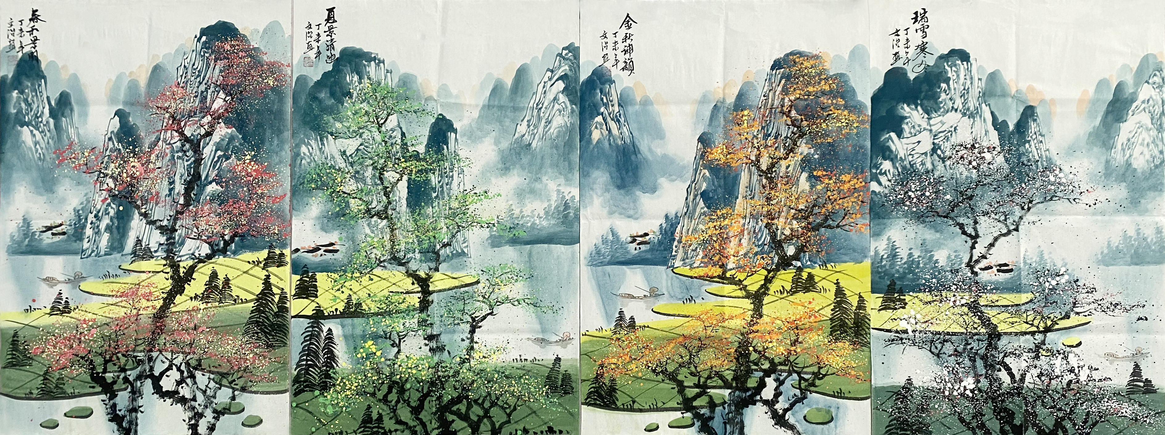 国画:春夏秋冬四条屏