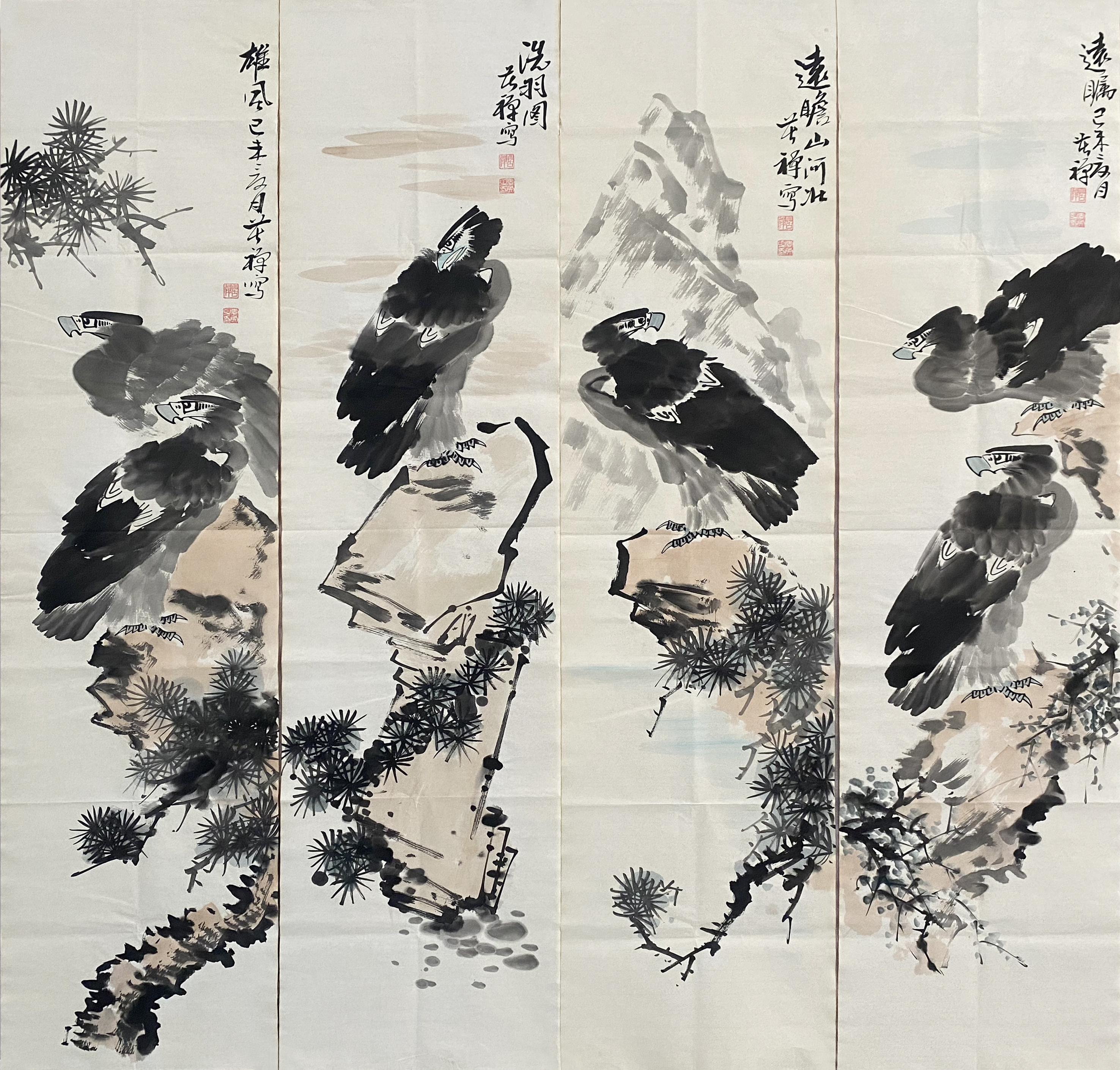 远瞩鹰四条屏57711