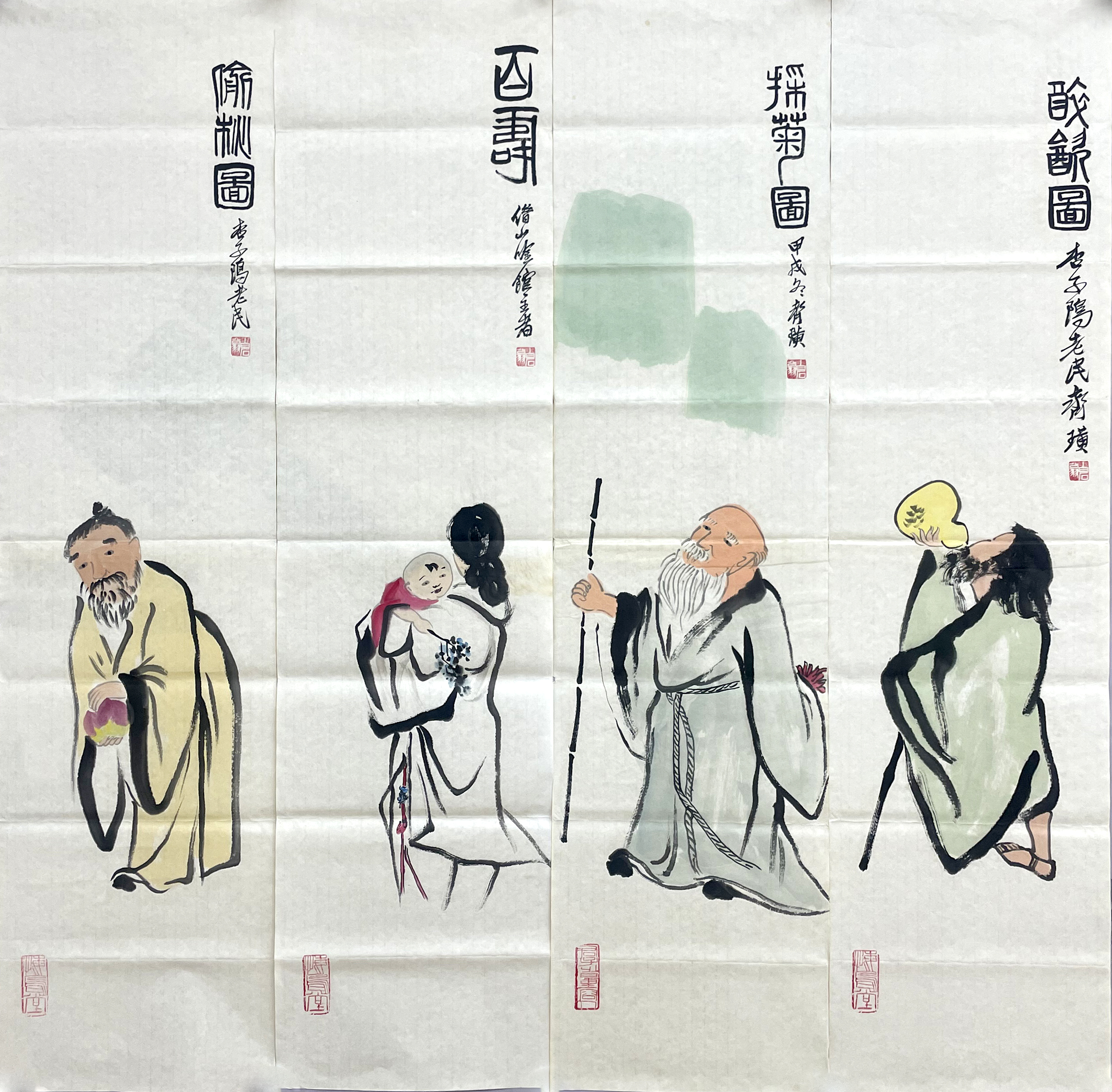 国画:人物四条屏