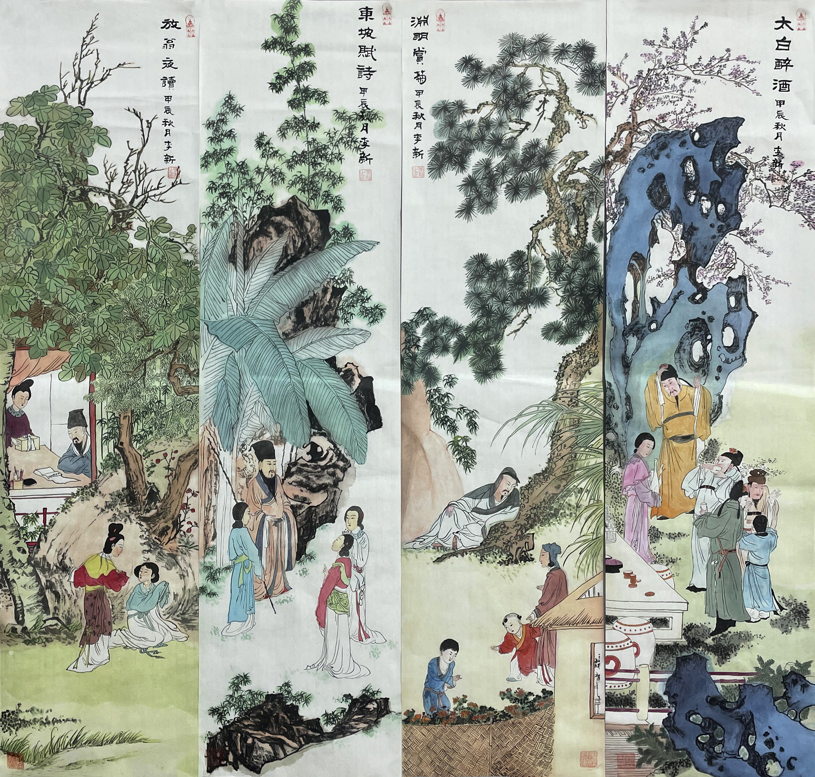 国画:人物四条屏