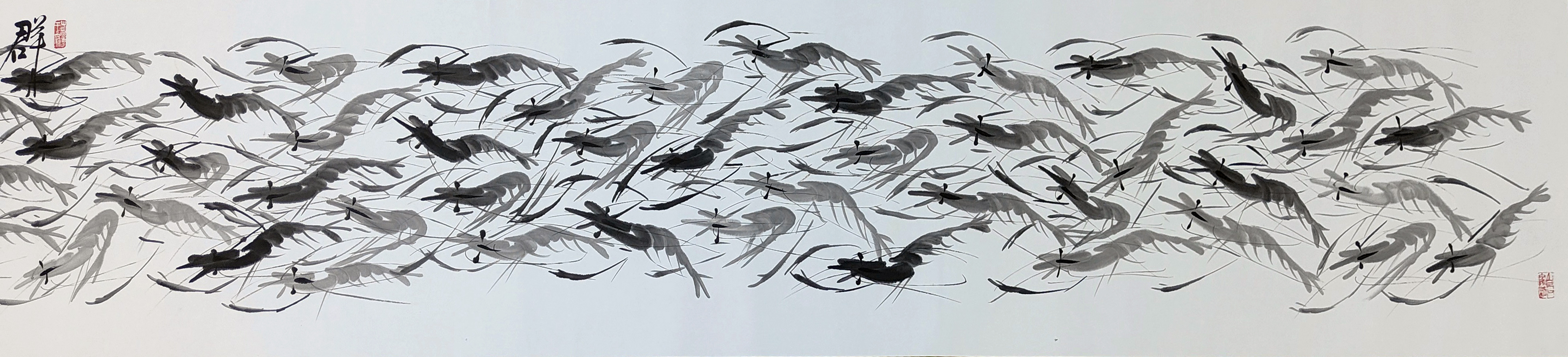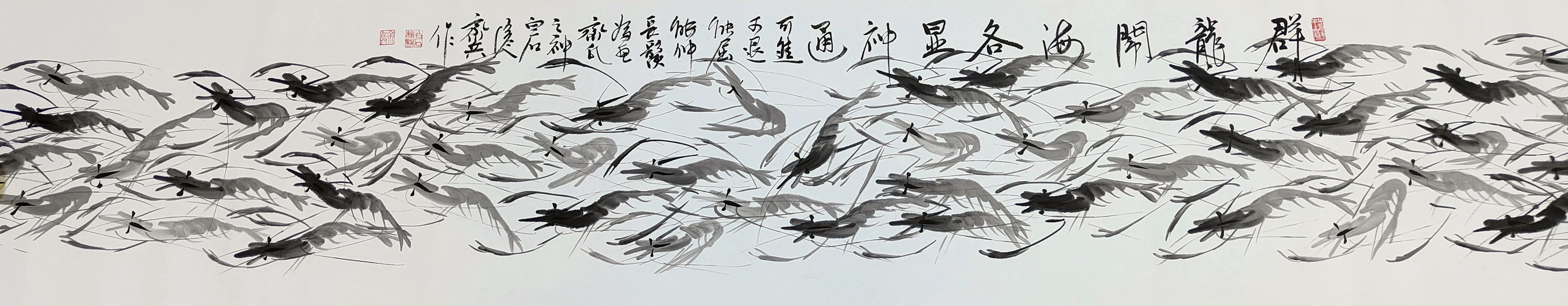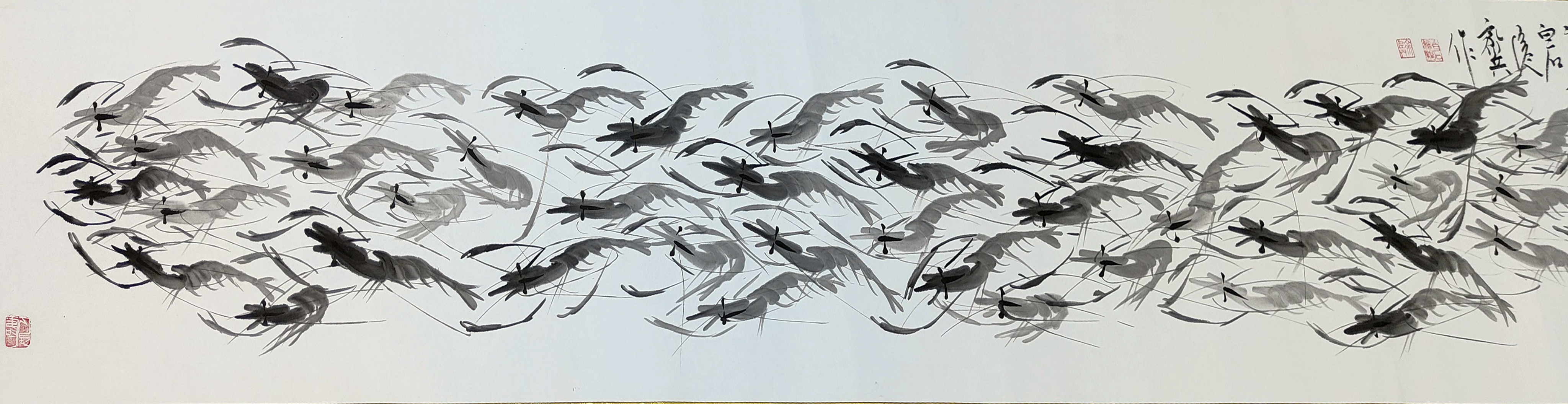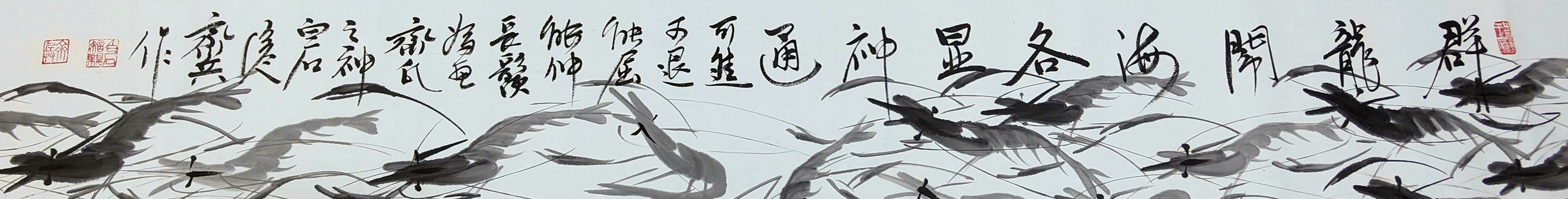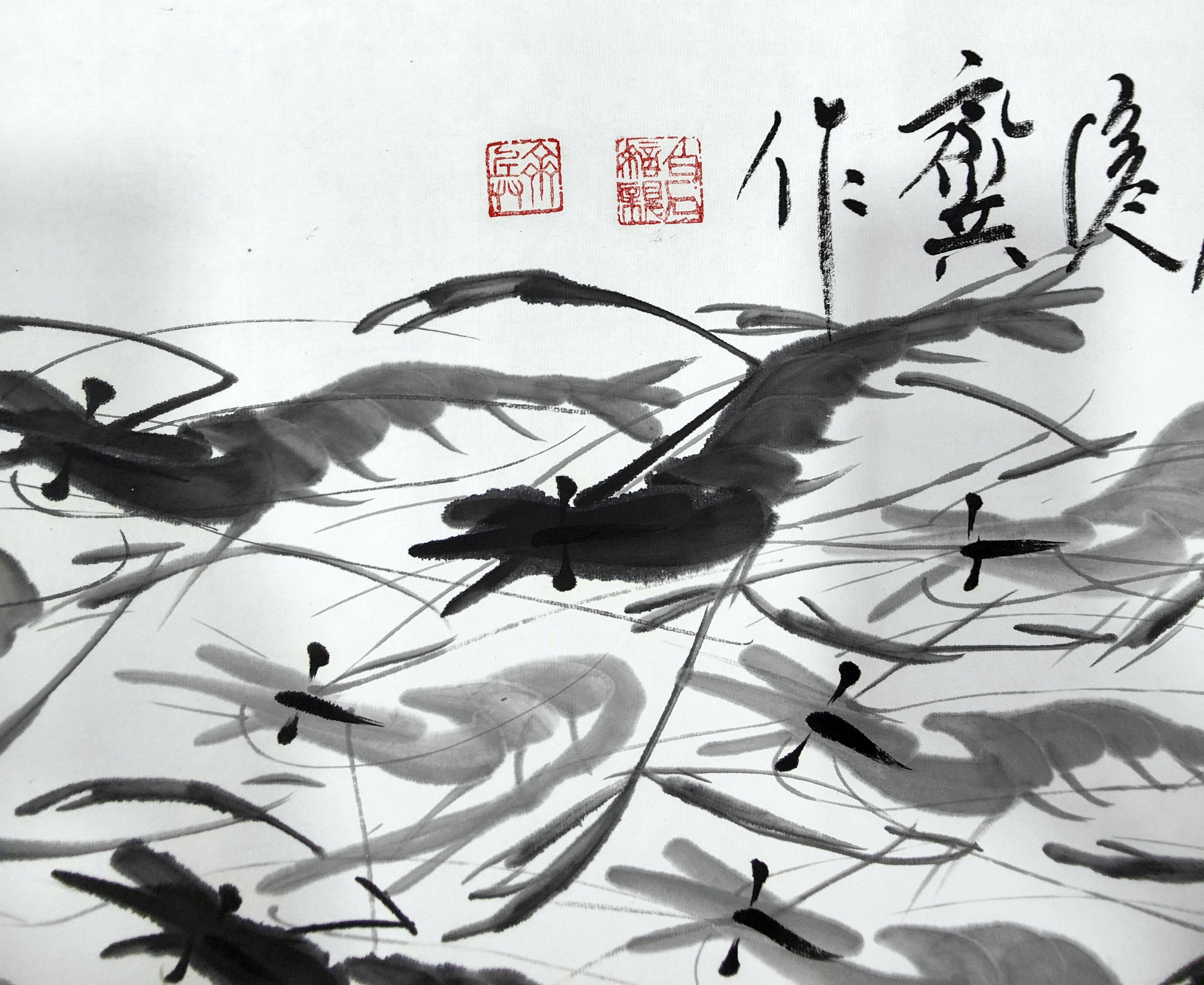 国画:百虾图