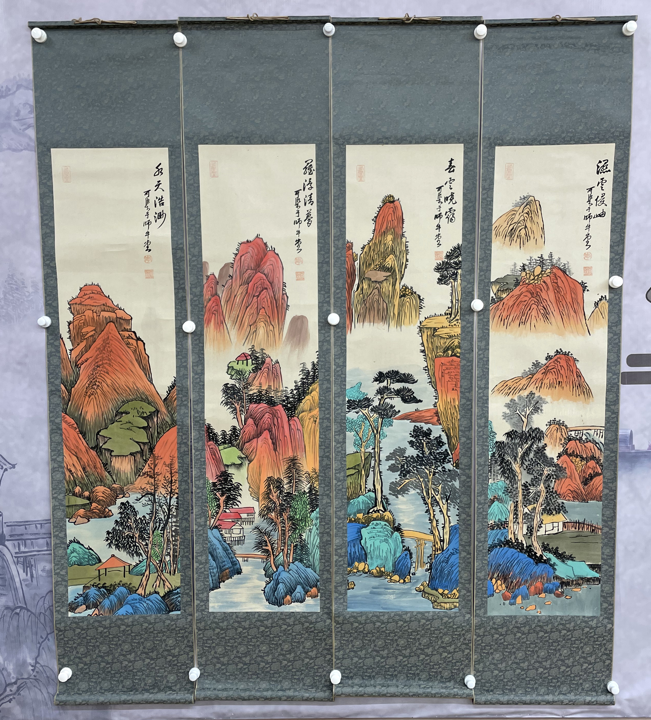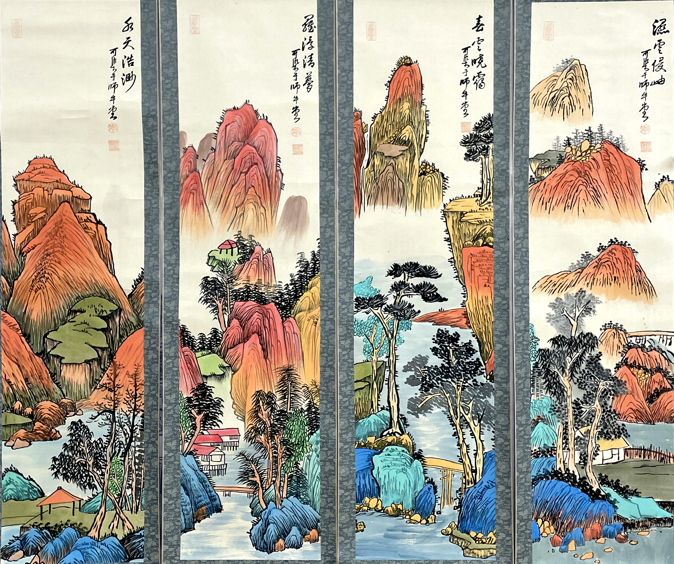国画:山水四条屏