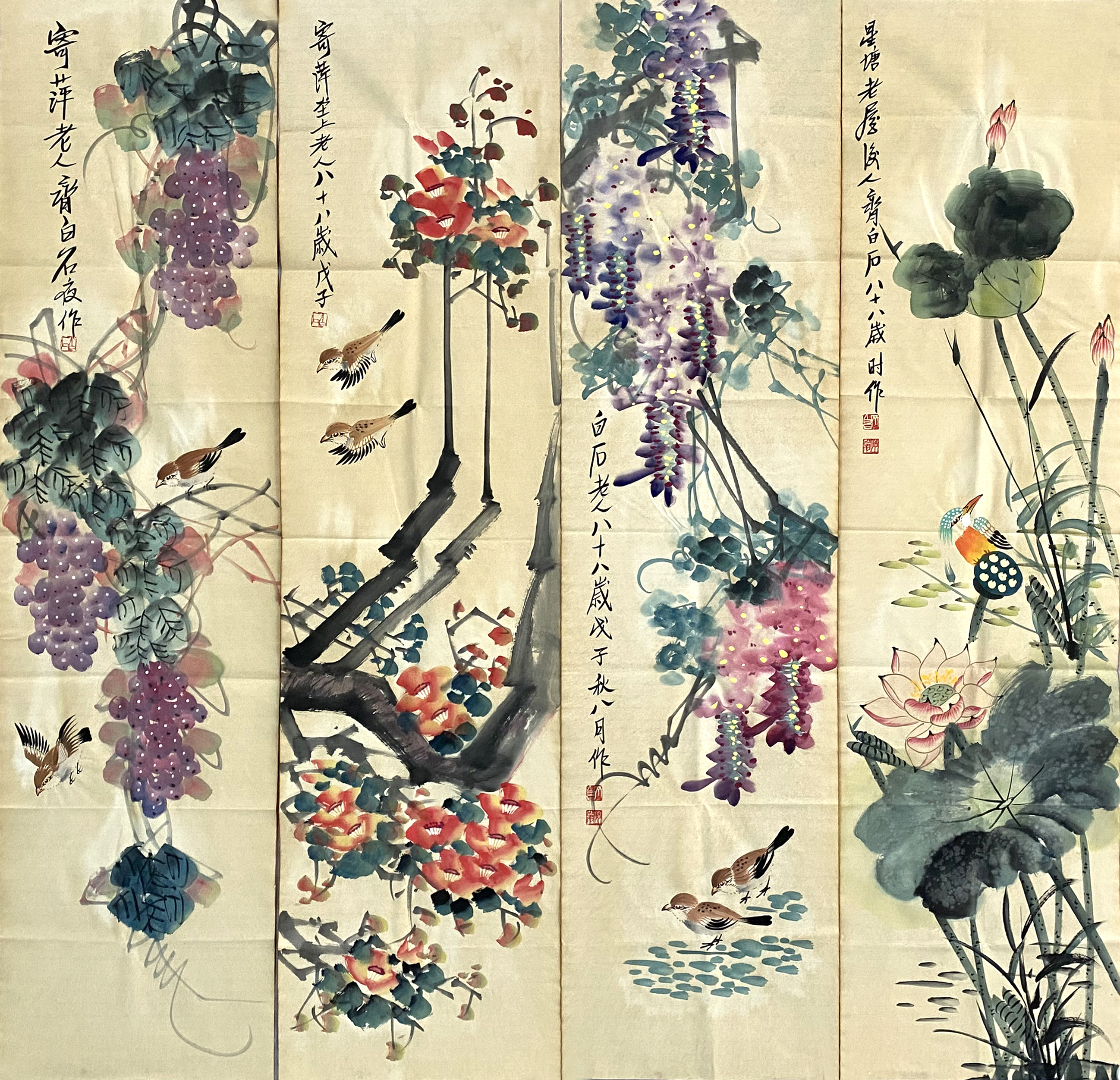 国画:花鸟四条屏