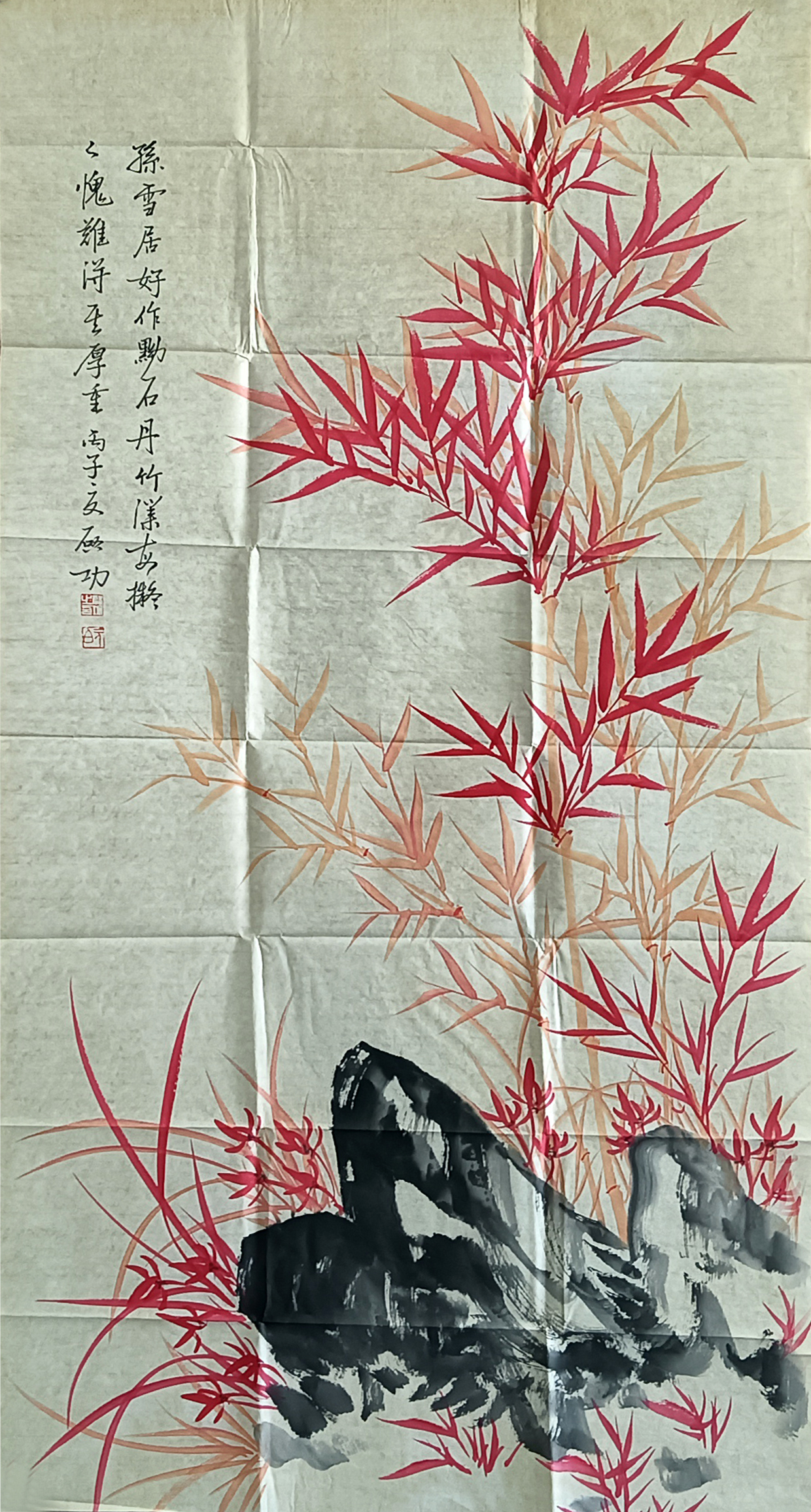 国画:红竹