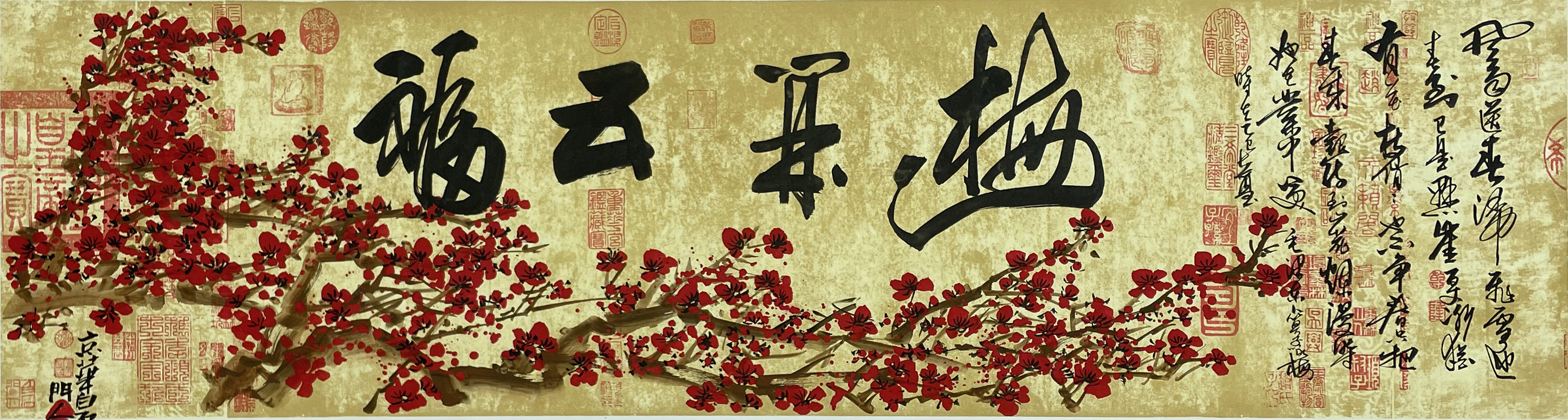 国画:梅林五福