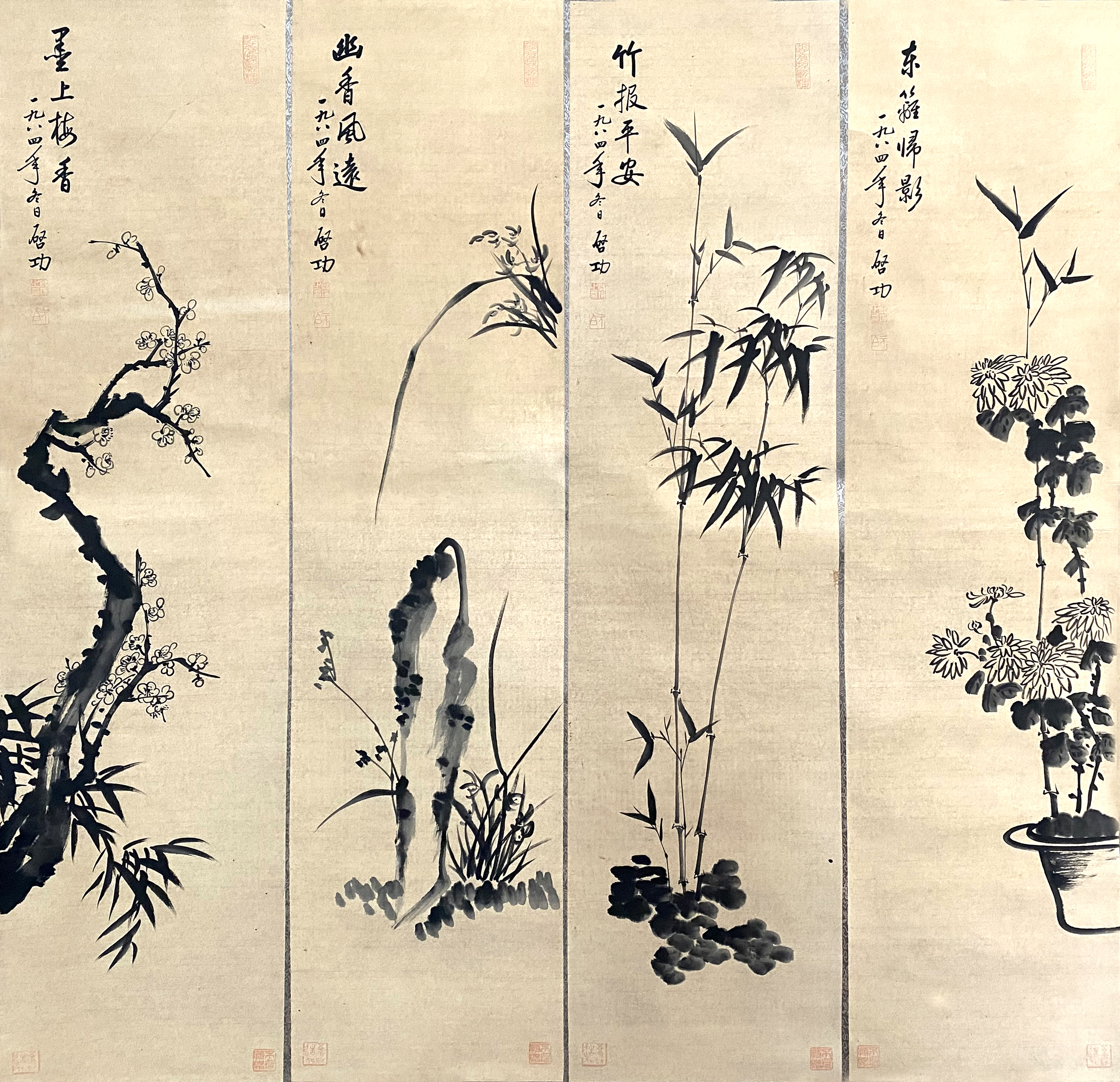 国画:梅兰竹菊四条屏
