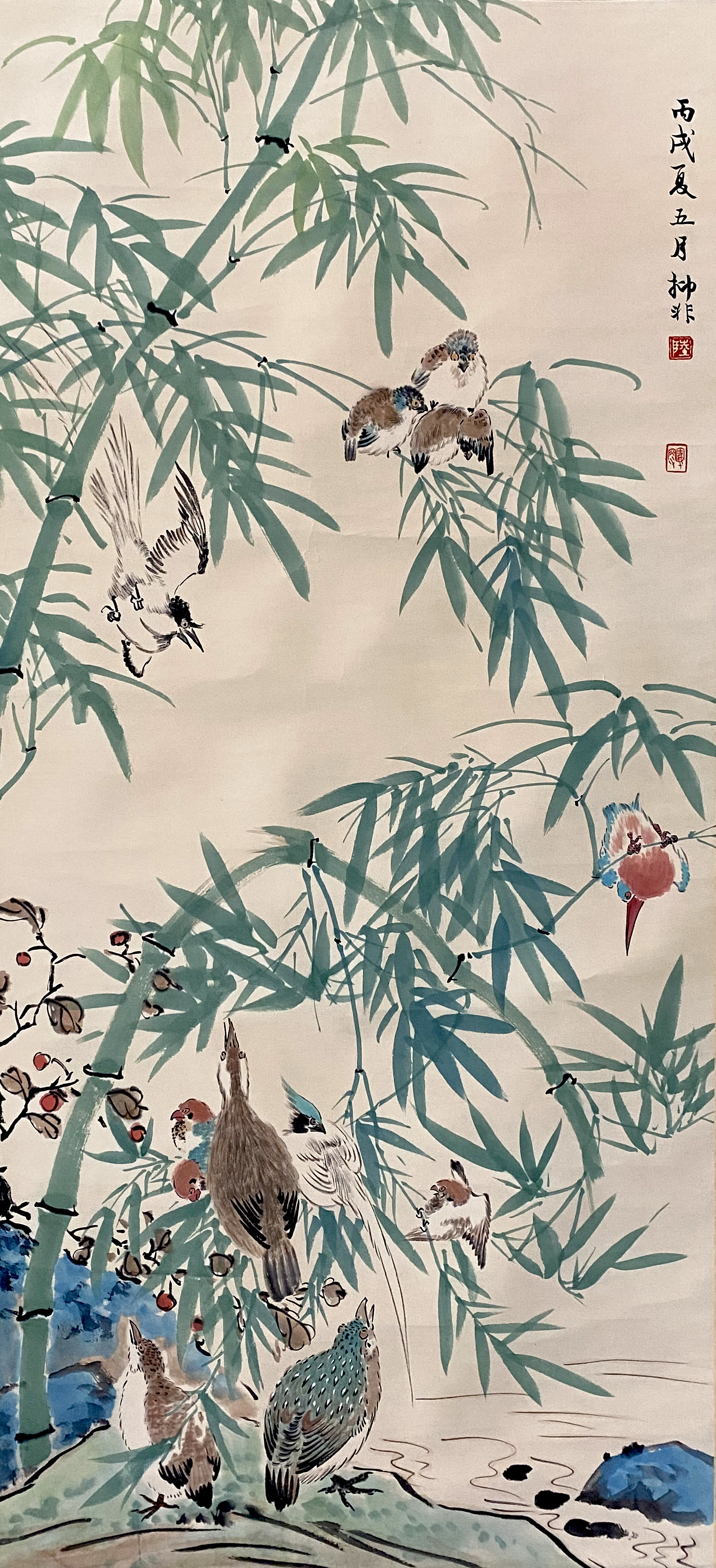 国画:翠竹鸣鸟图