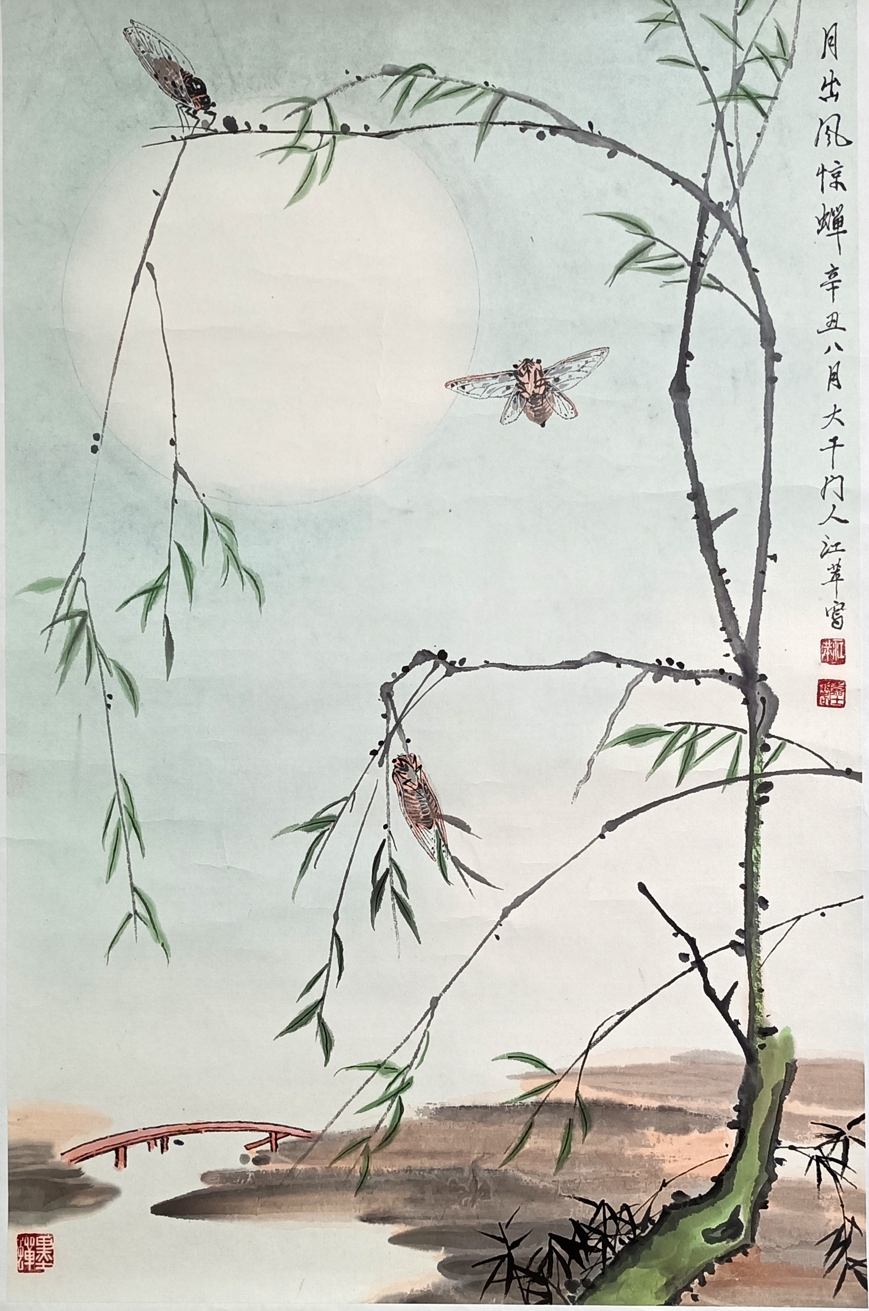 国画:月出风惊蝉