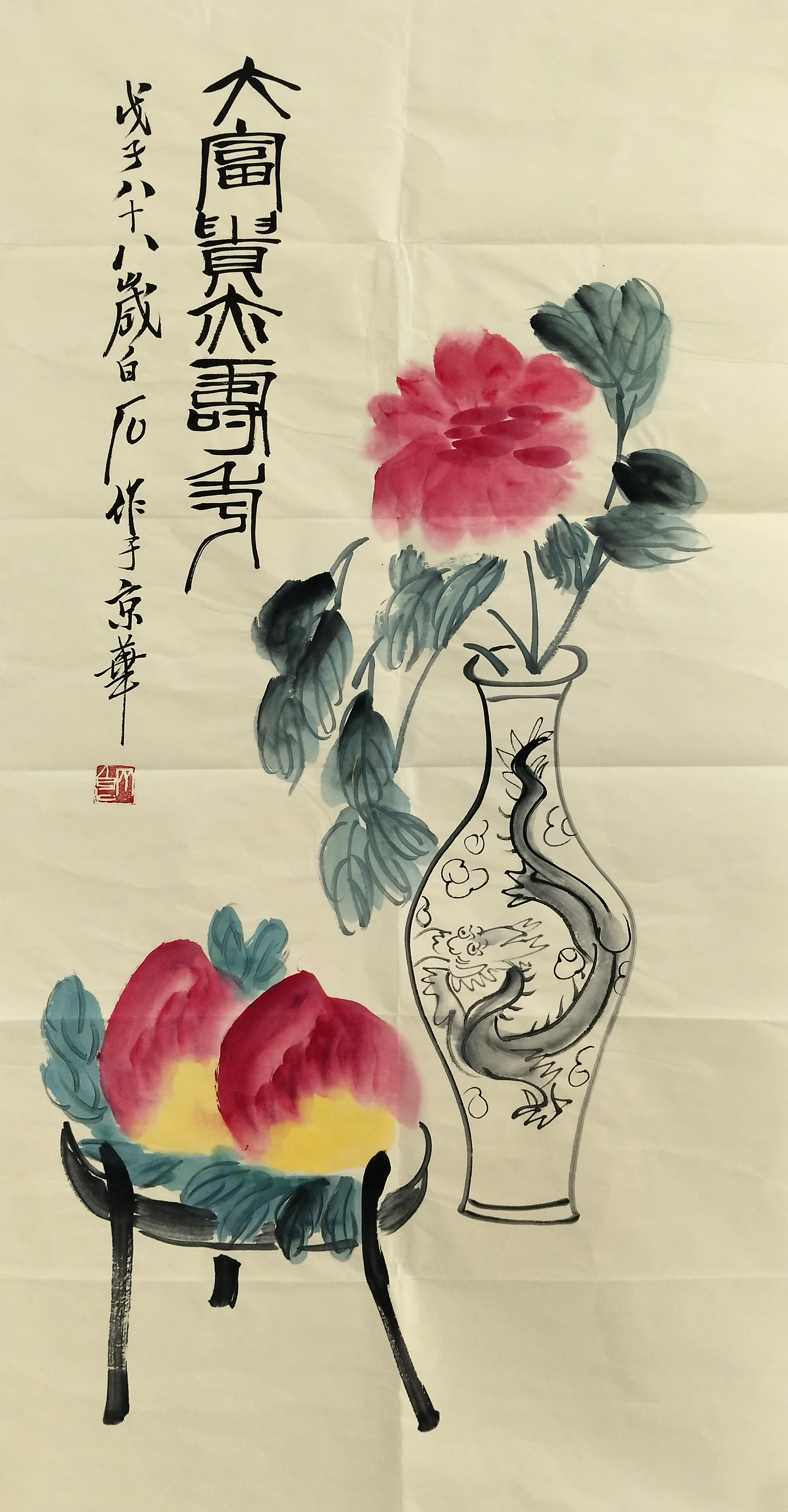 国画:大富贵大寿桃