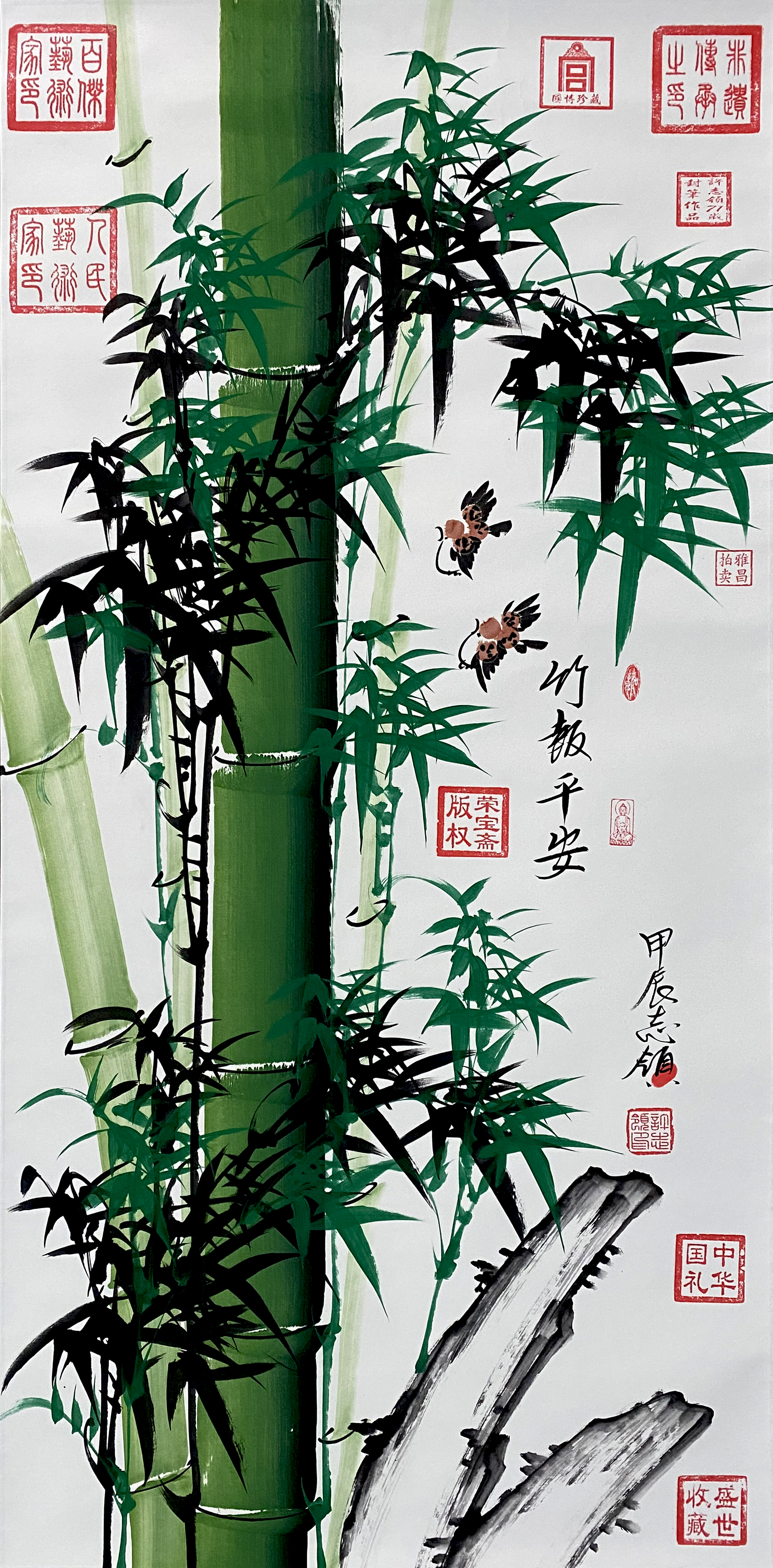 国画:竹报平安