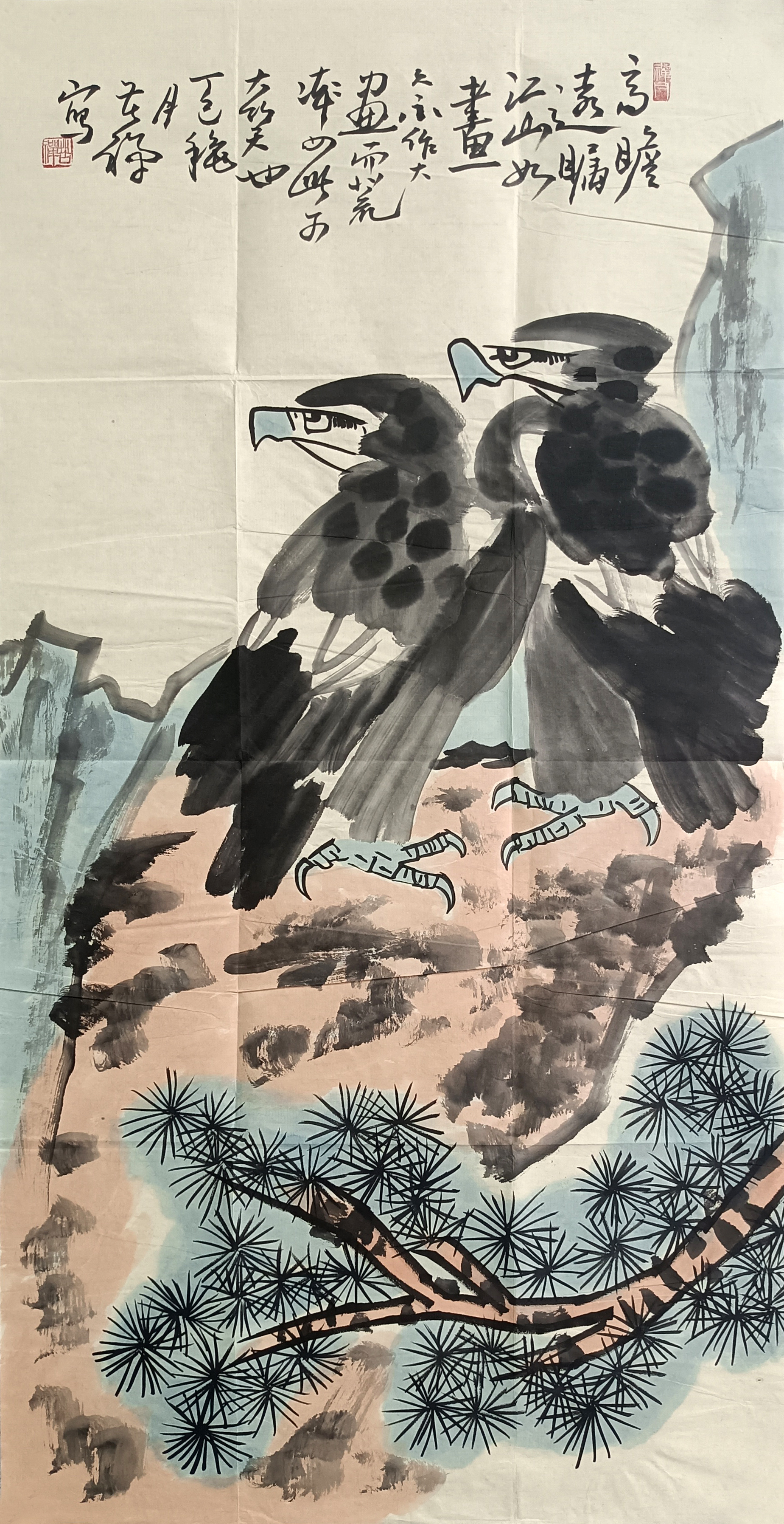 国画:双鹰图