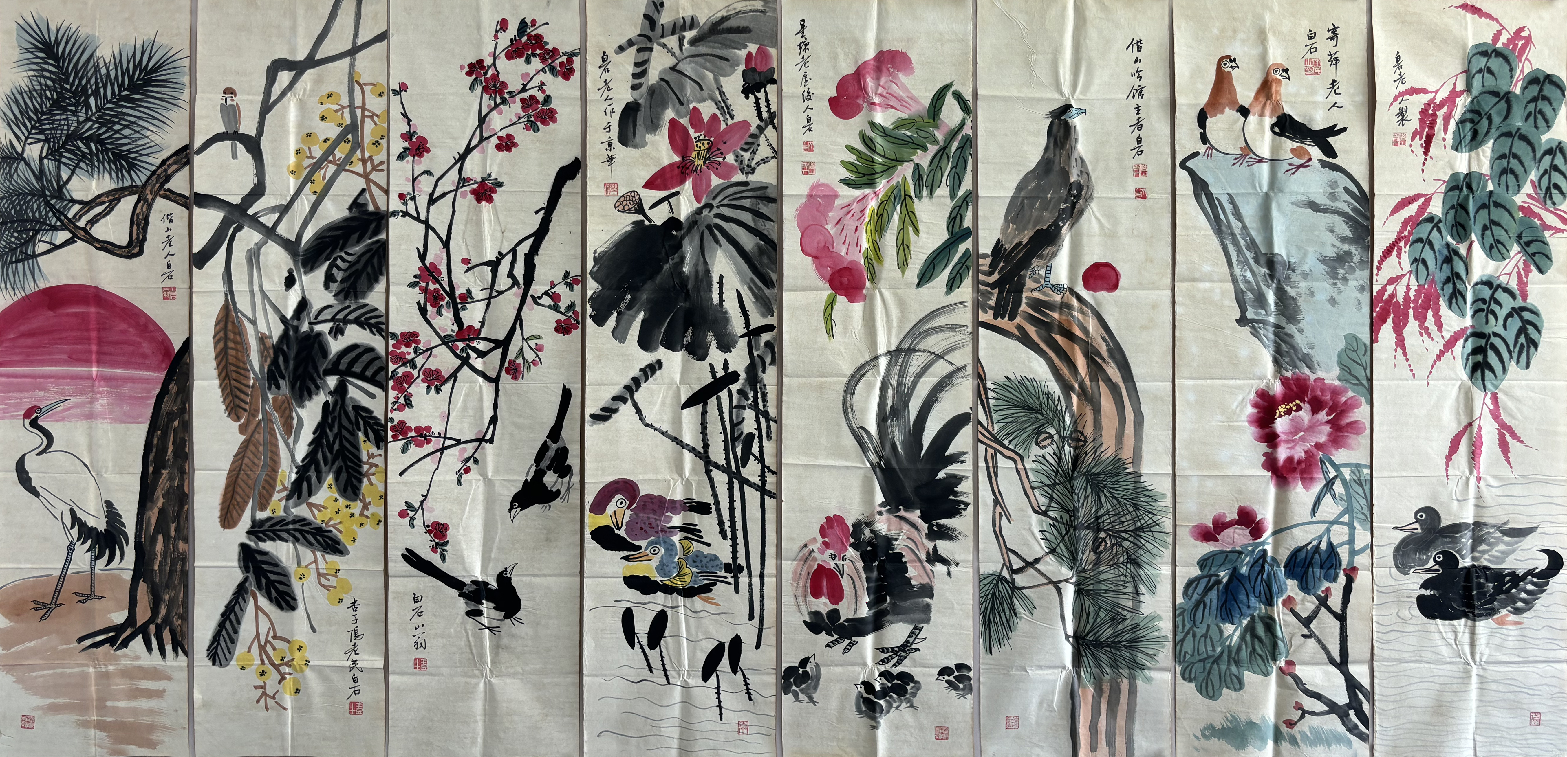 国画:花鸟八条屏