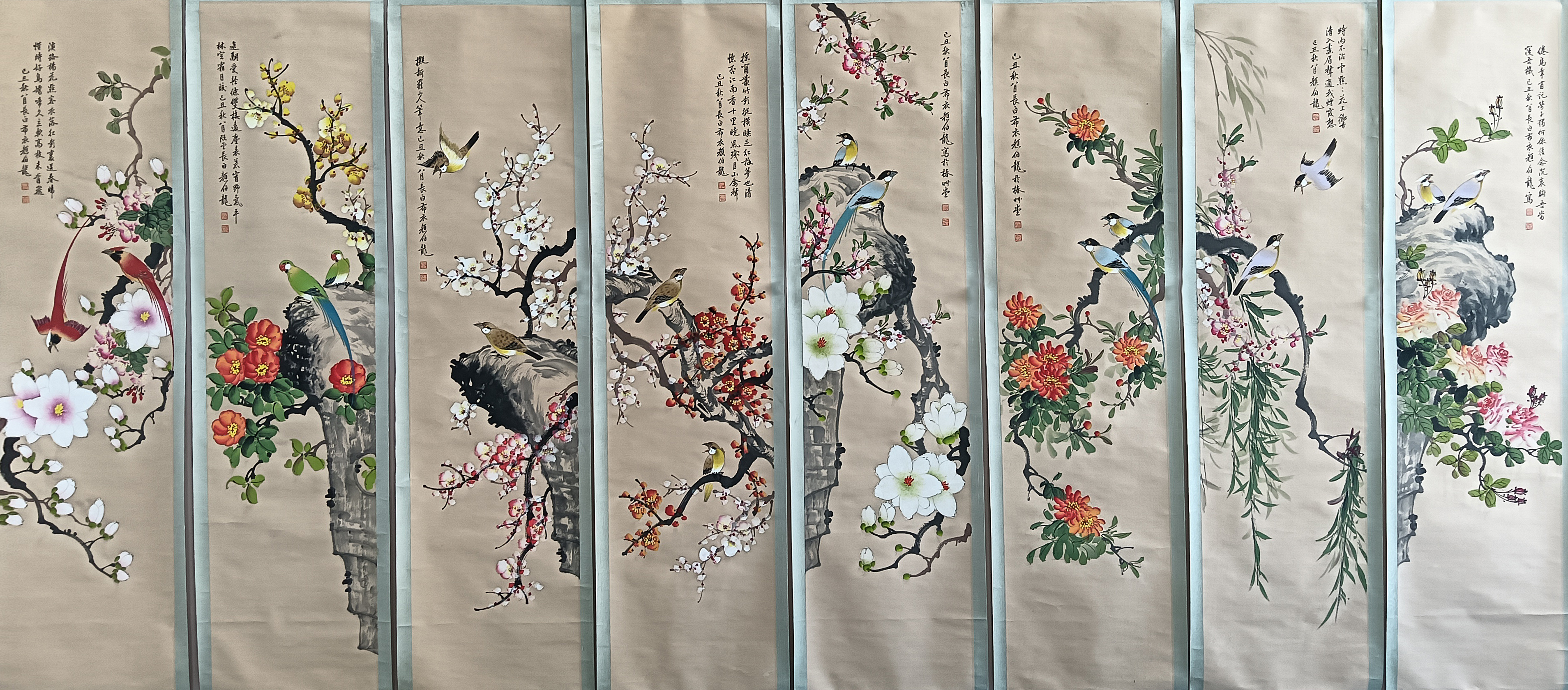 国画:花鸟八条屏