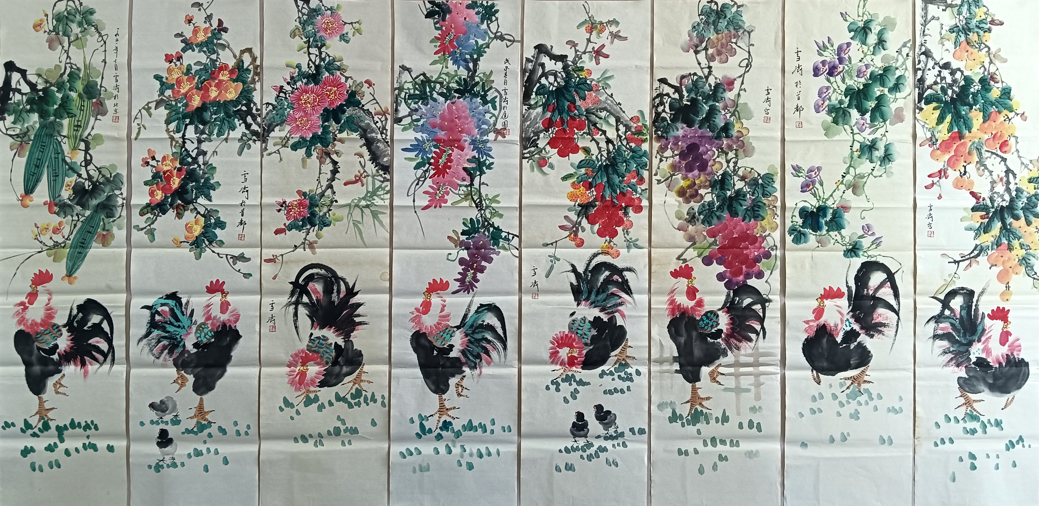 国画:大吉图八条屏
