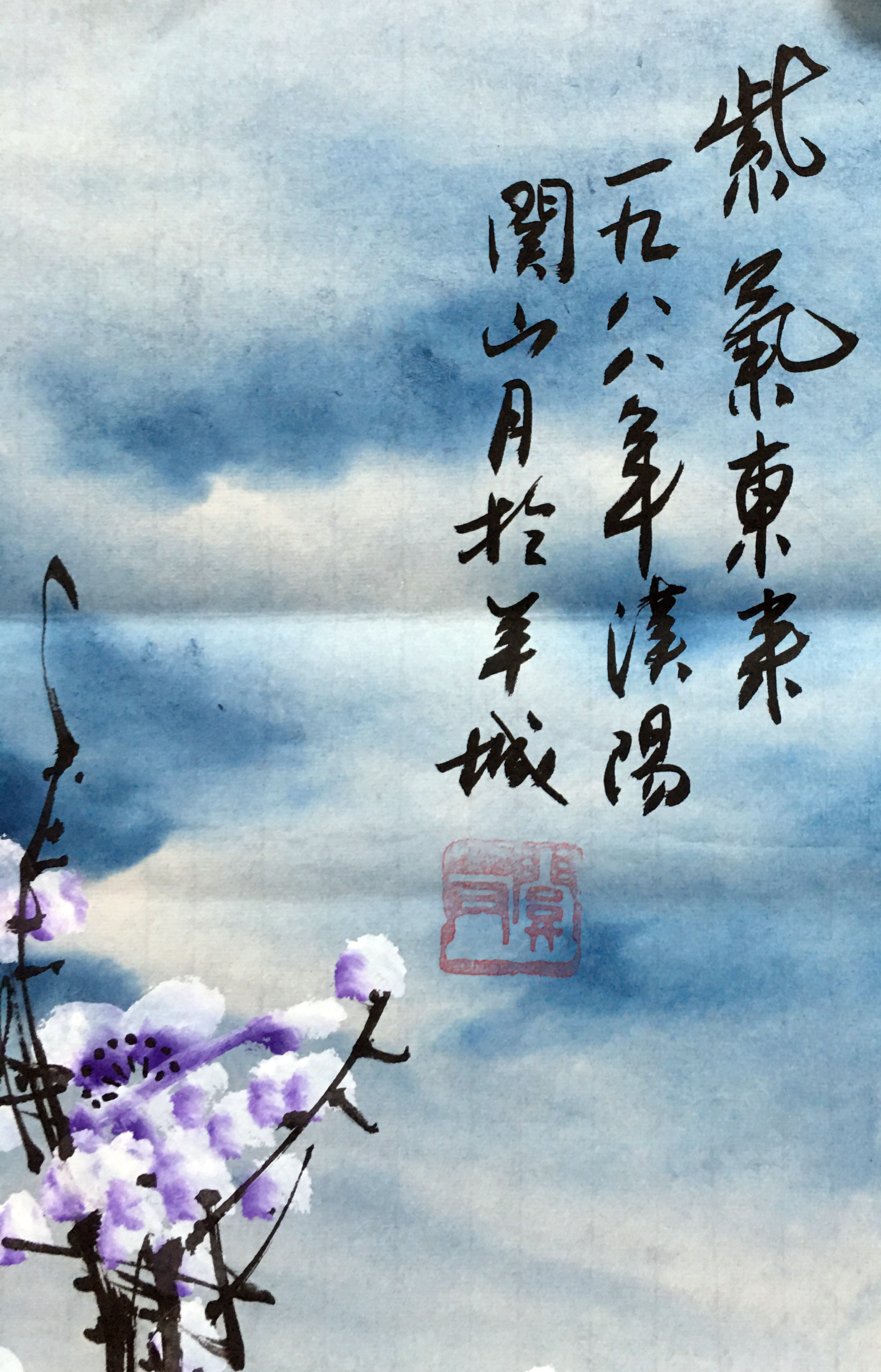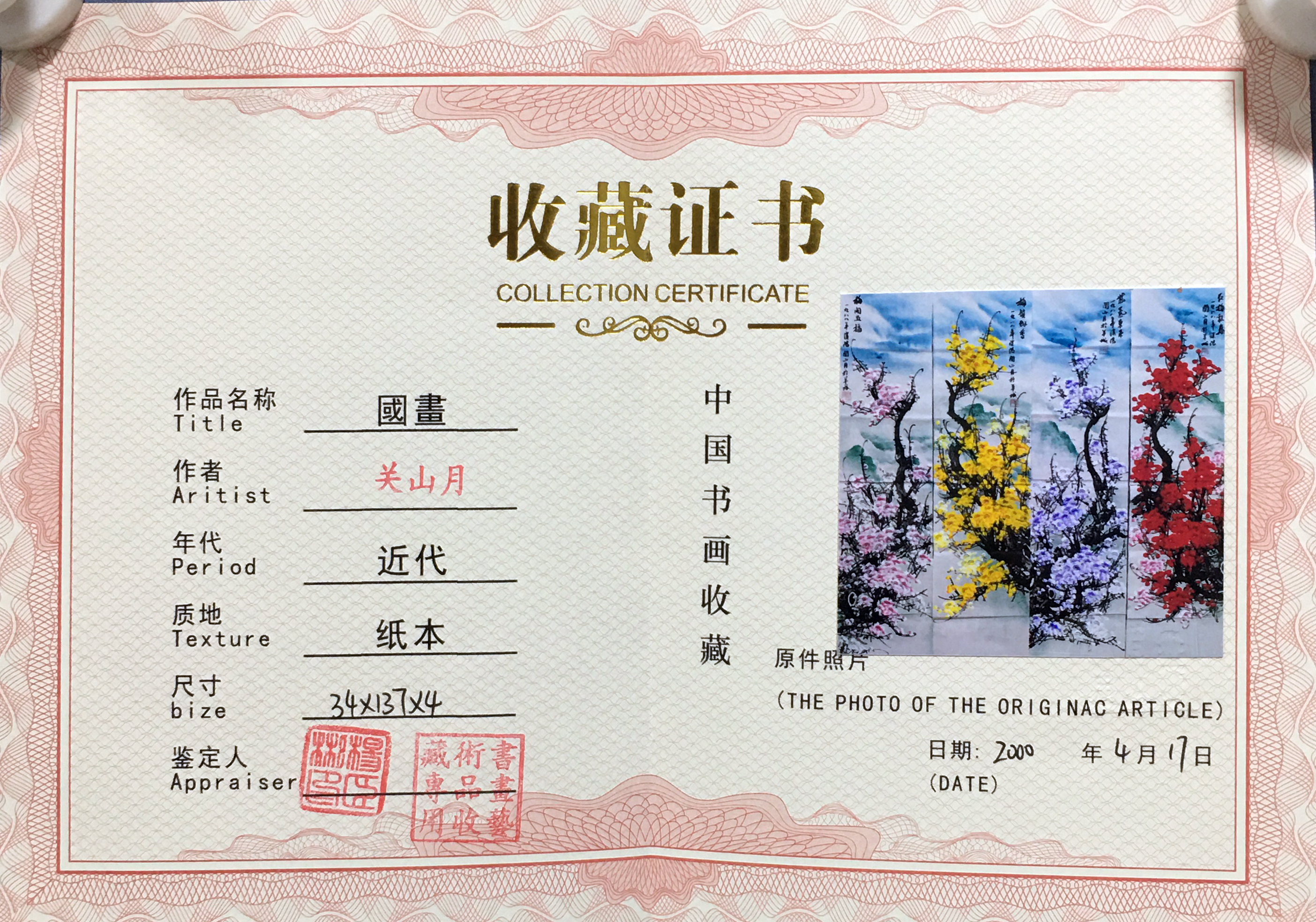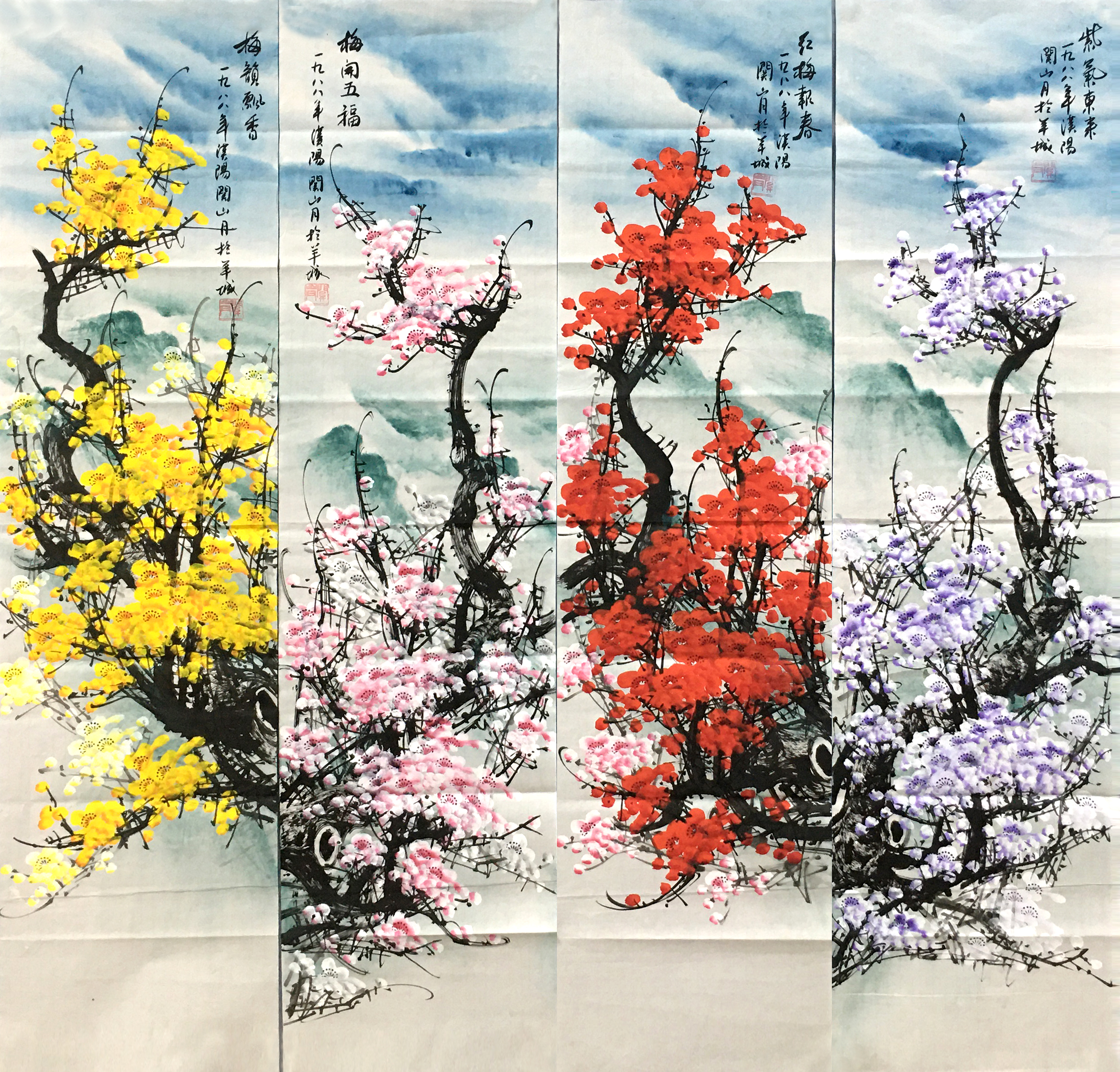 国画:四色梅花条屏