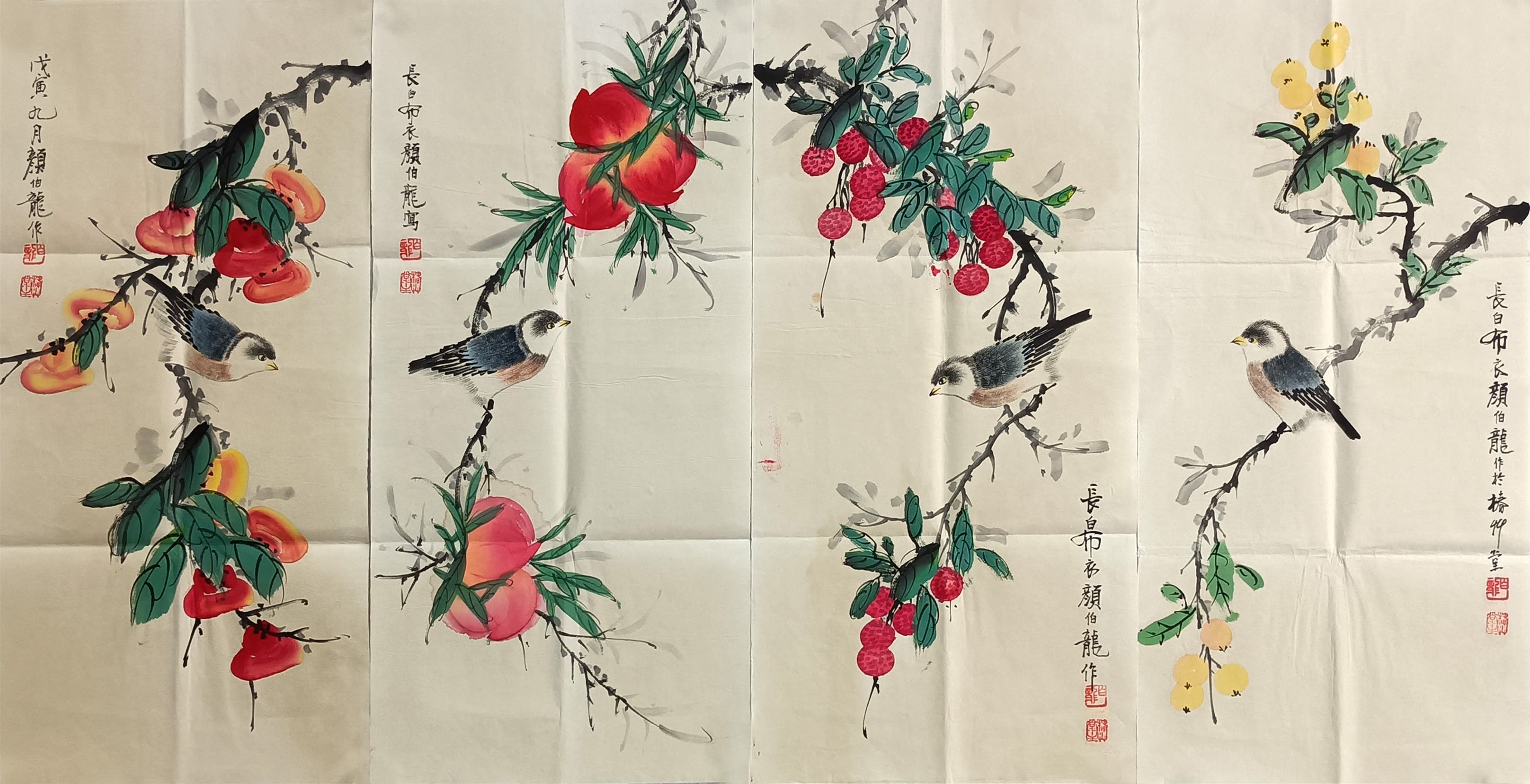 花鸟四条屏