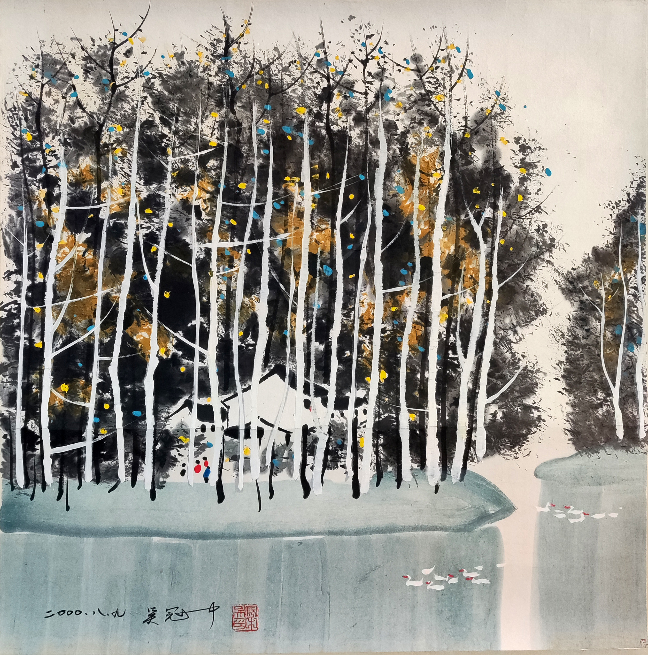 国画:白桦林