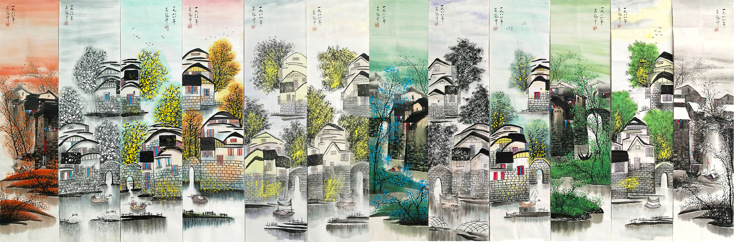 国画:江南风景十二条屏