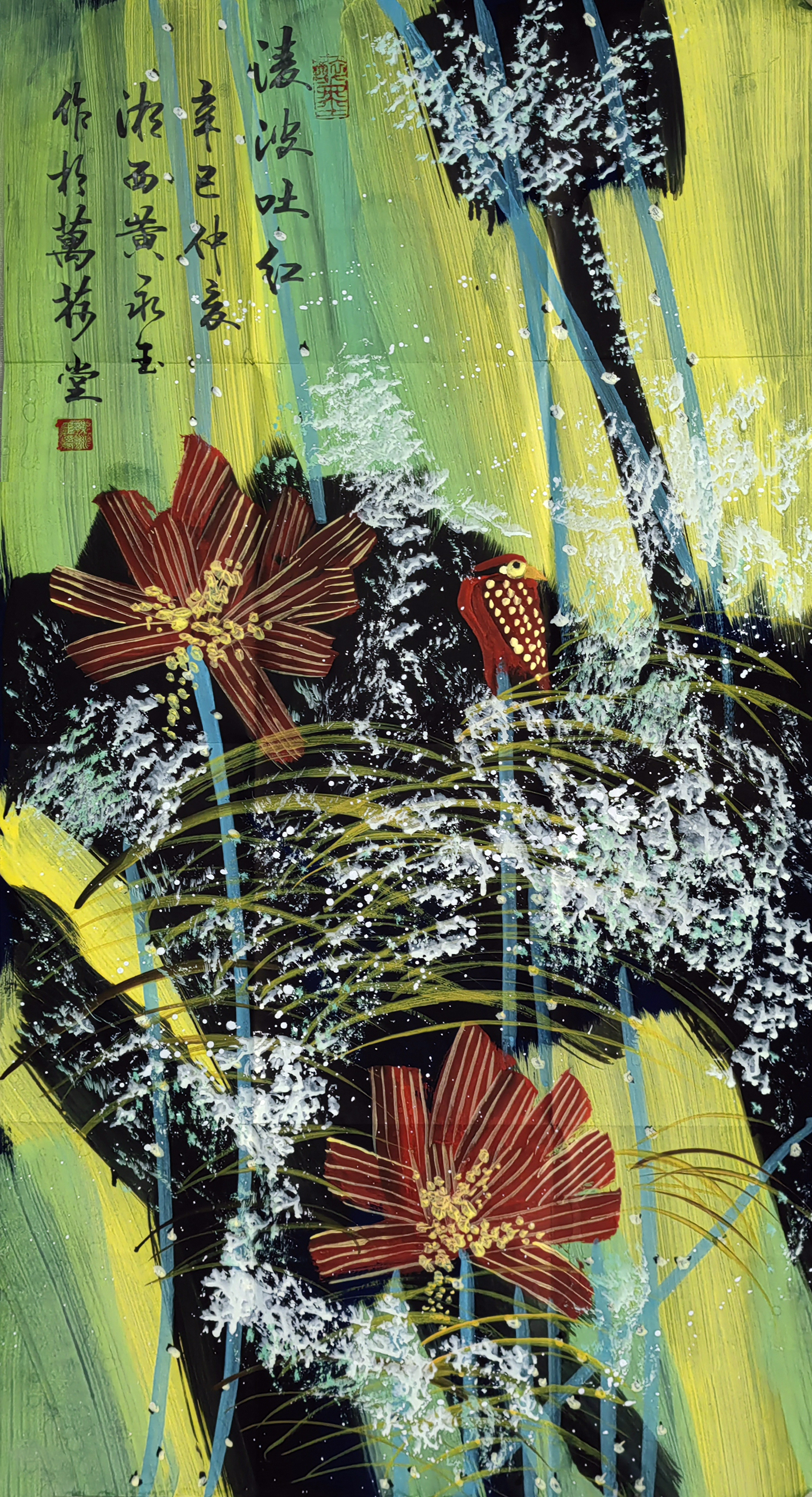 国画:凌波吐红