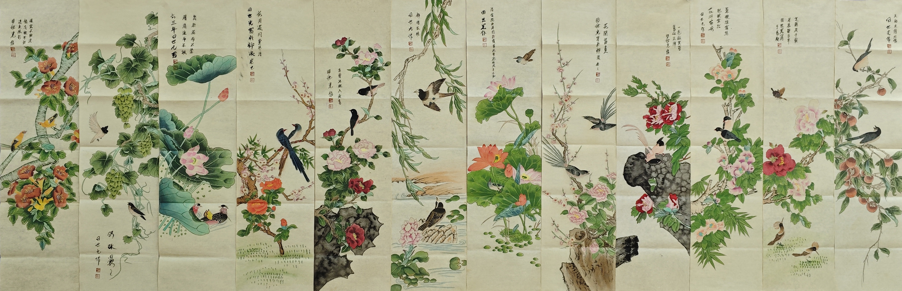 国画:花鸟图十二条屏