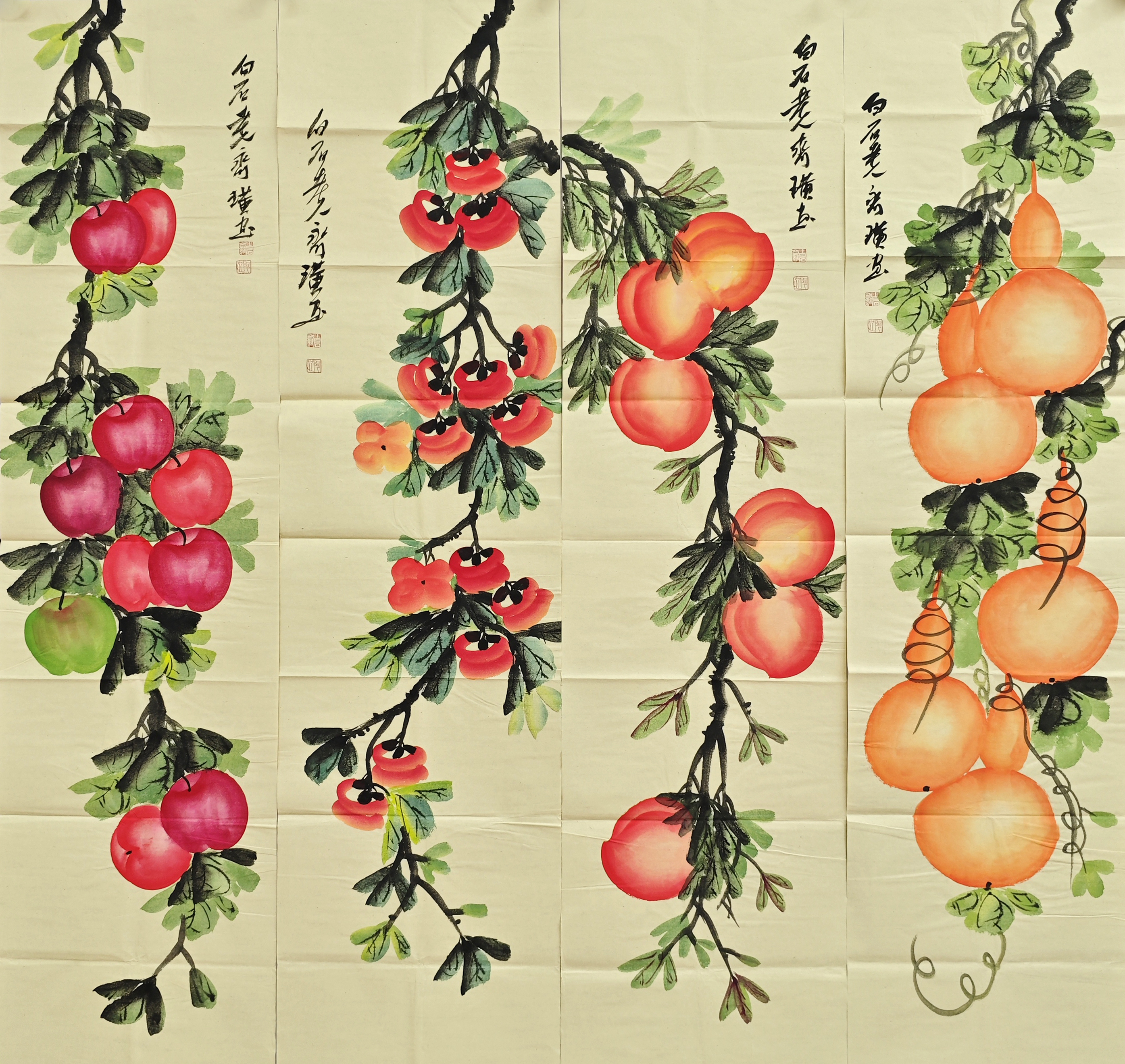 国画:福禄吉祥四条屏