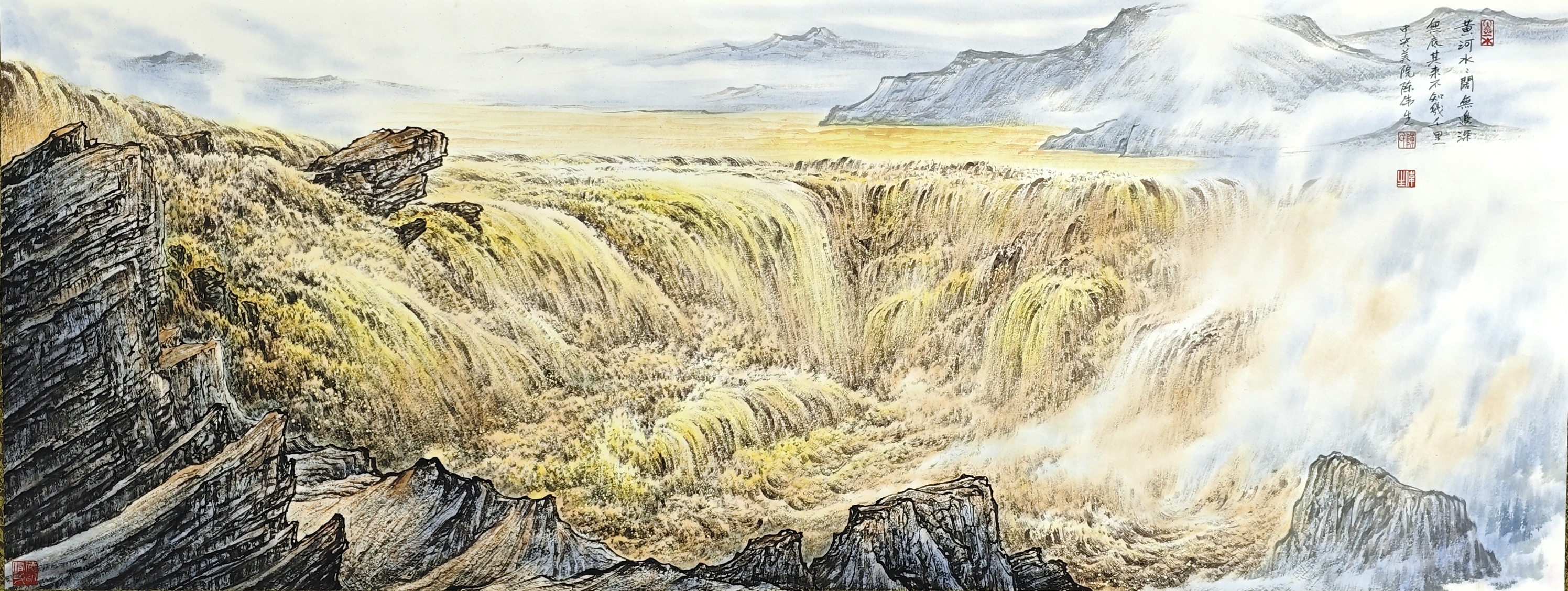 国画:黄河水阔无边深