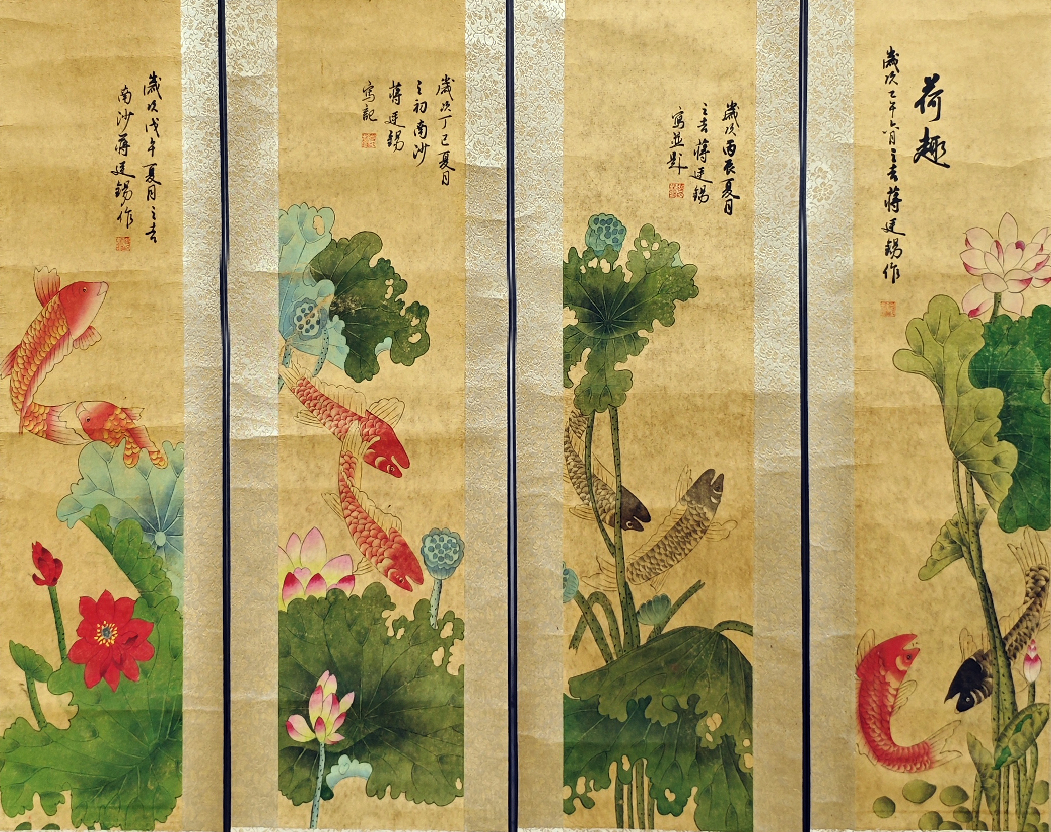 国画:荷趣四条屏