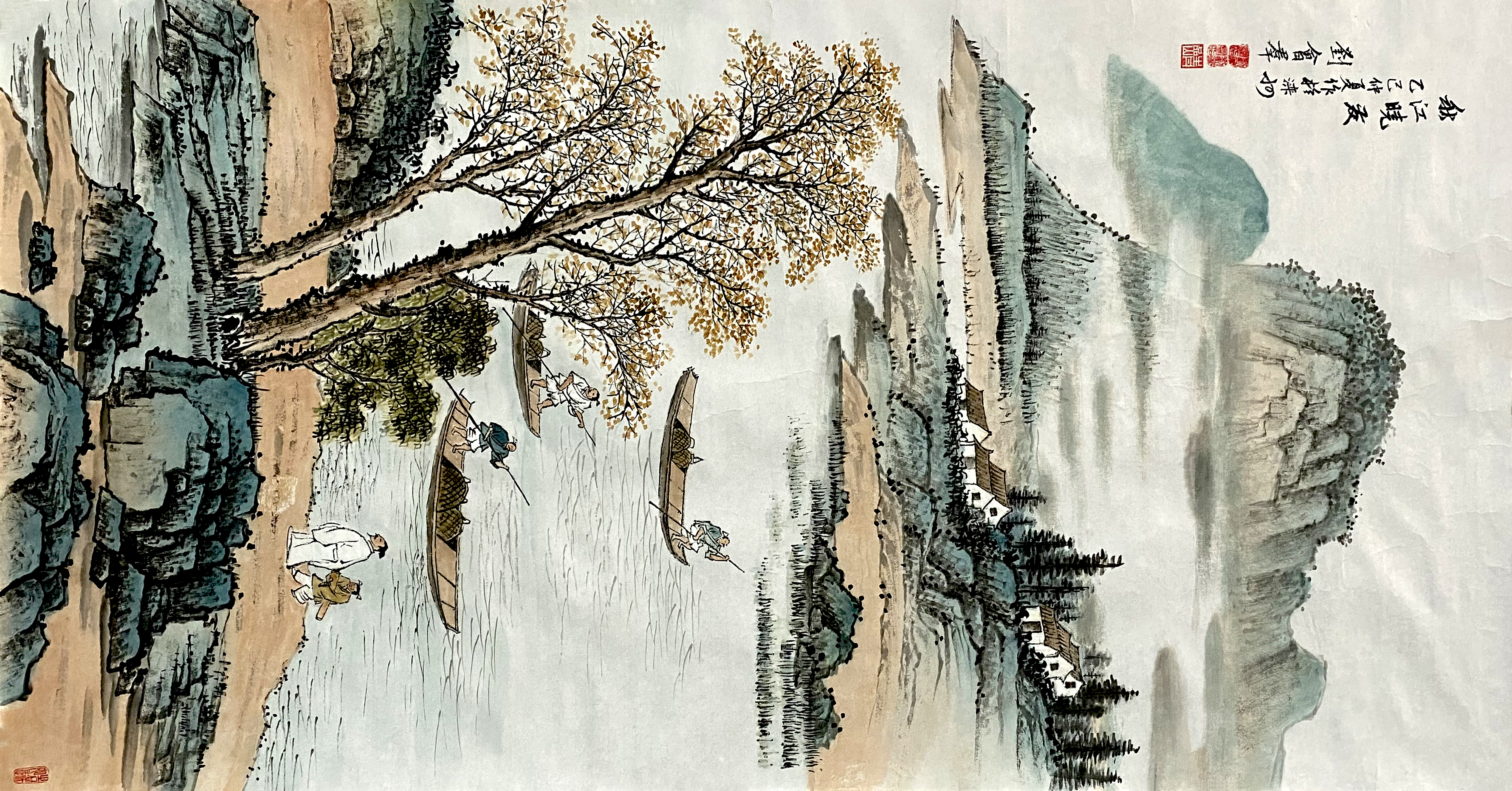 国画:秋江晓发