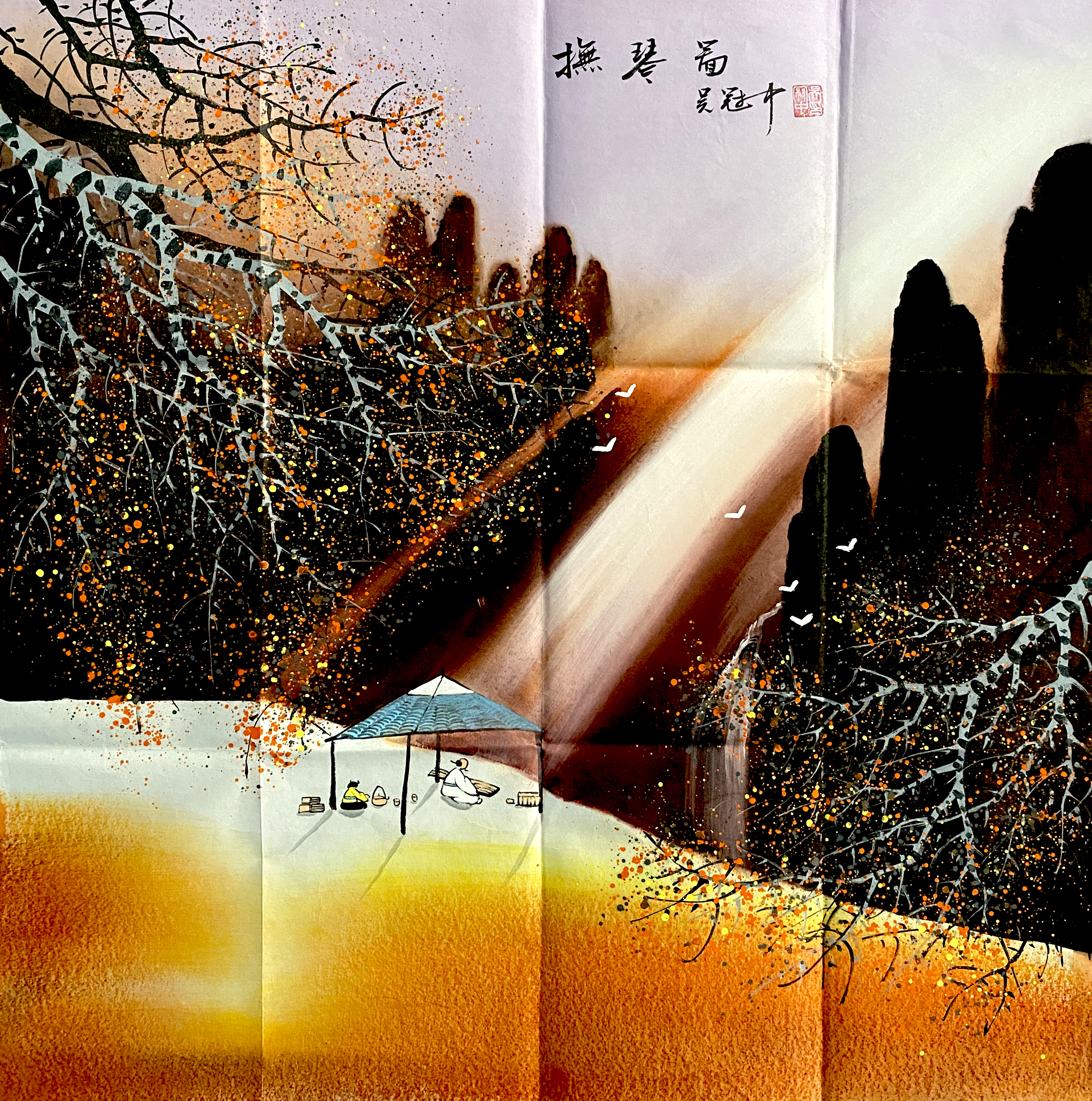 国画:抚琴图