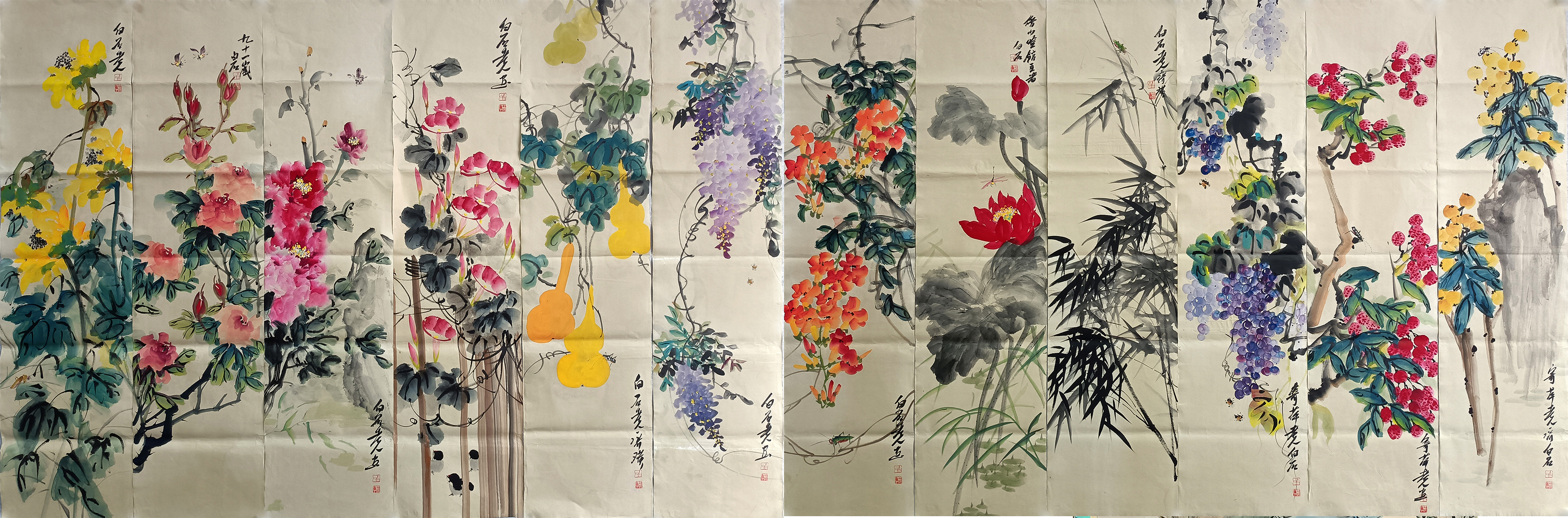 国画:花鸟十二条屏