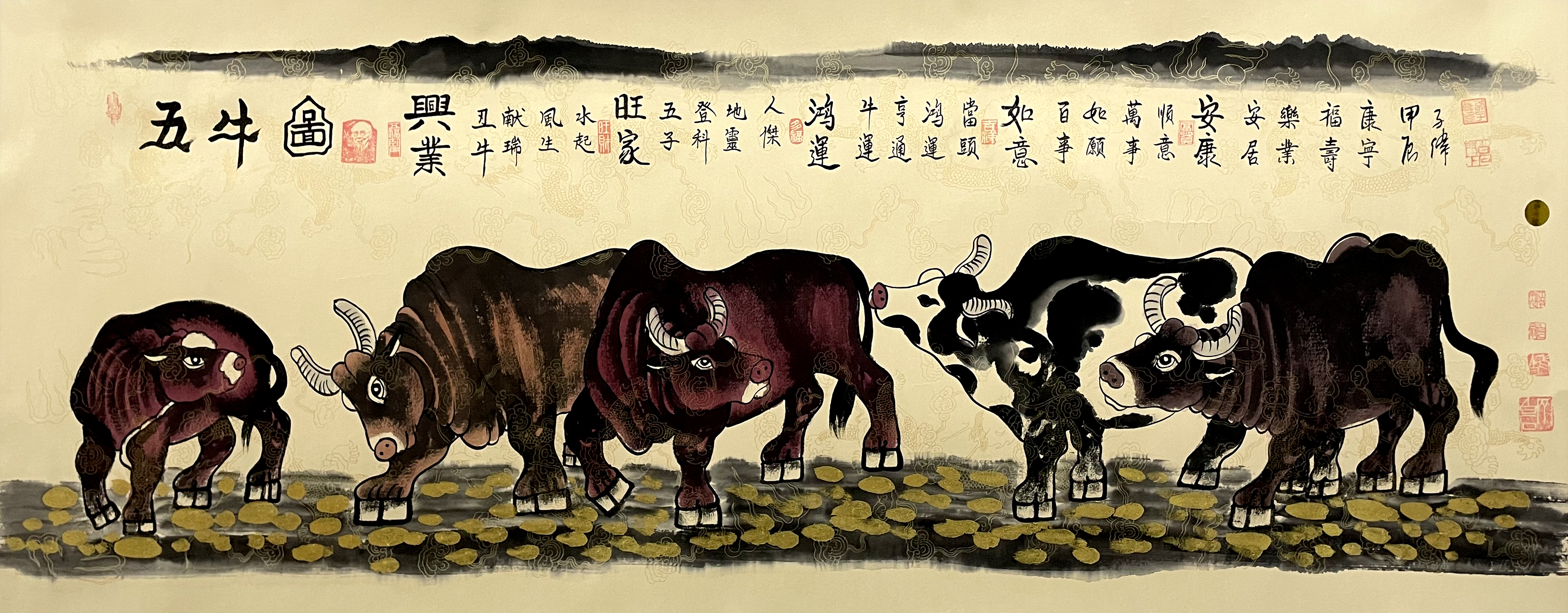 国画:五牛图