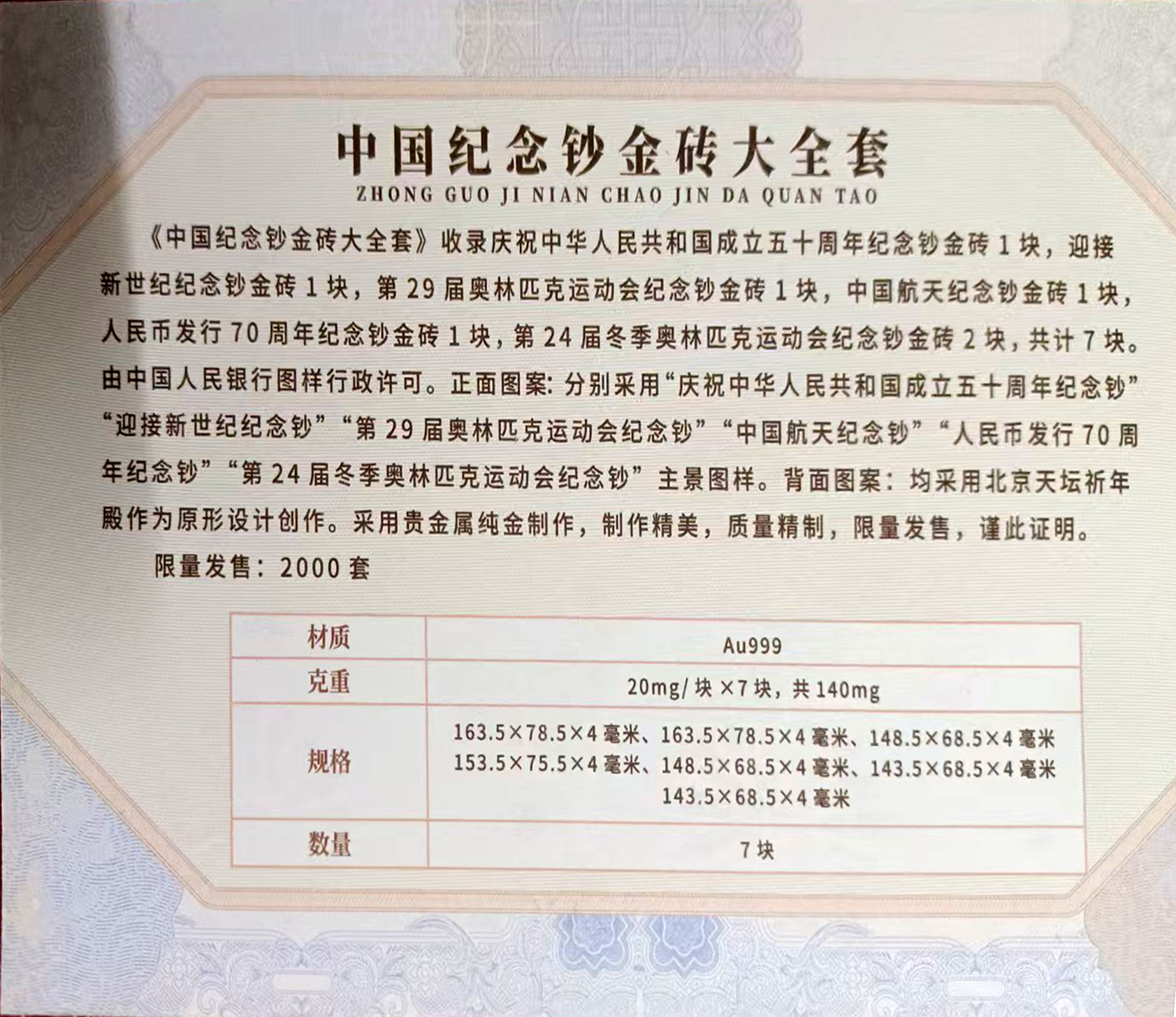 名称:盛世财富纪念钞金砖