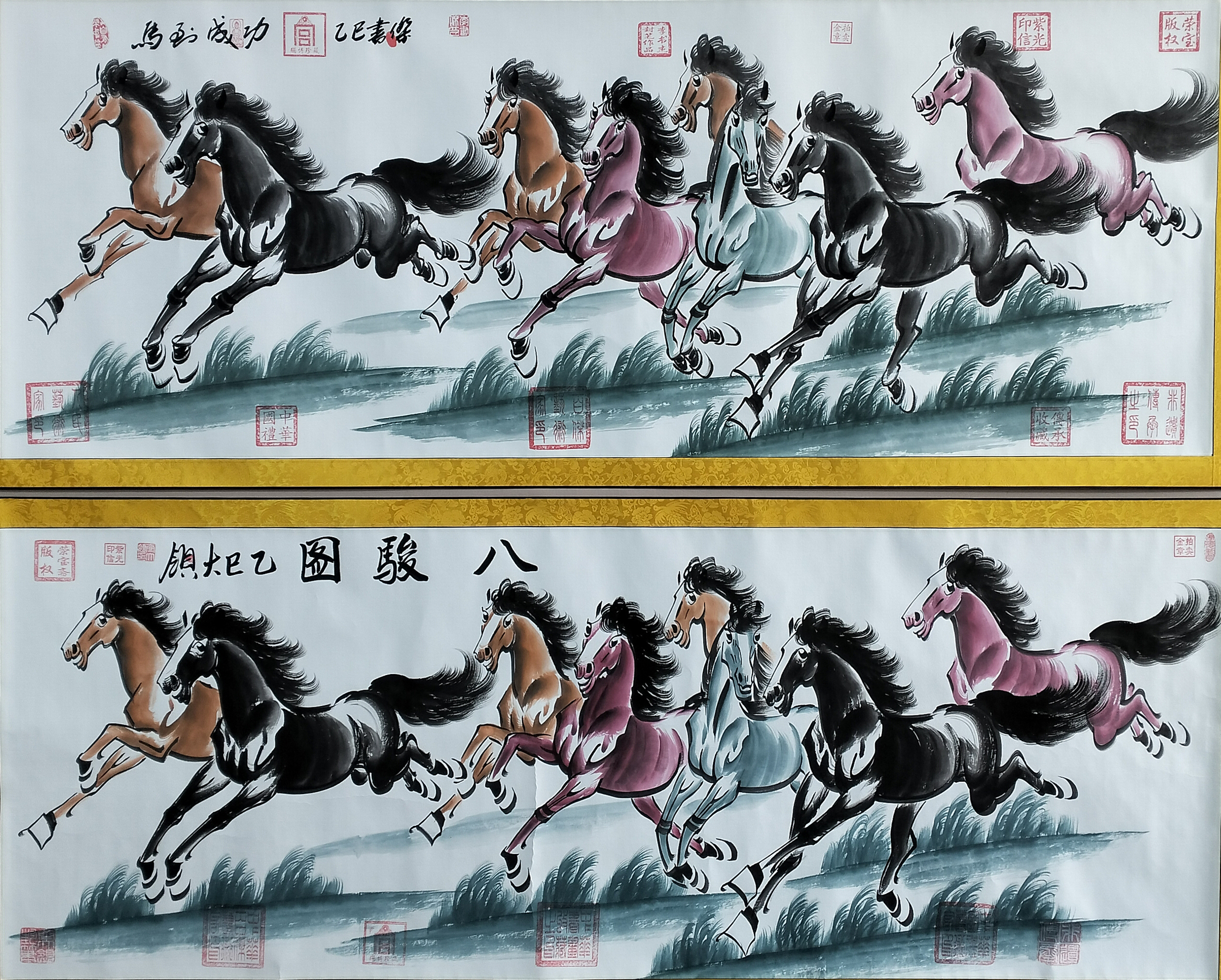 国画:八骏图、马到成功