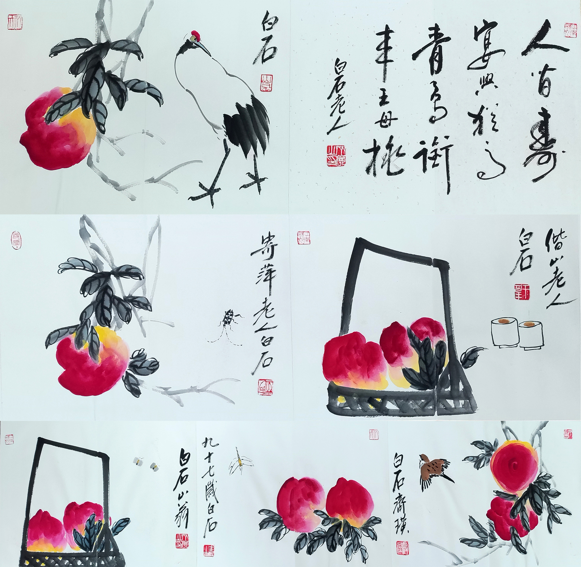 国画:寿桃册页